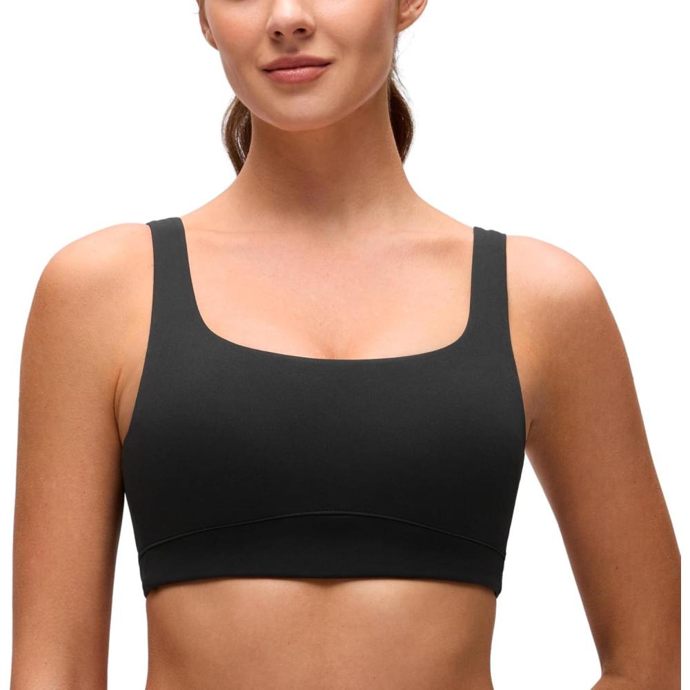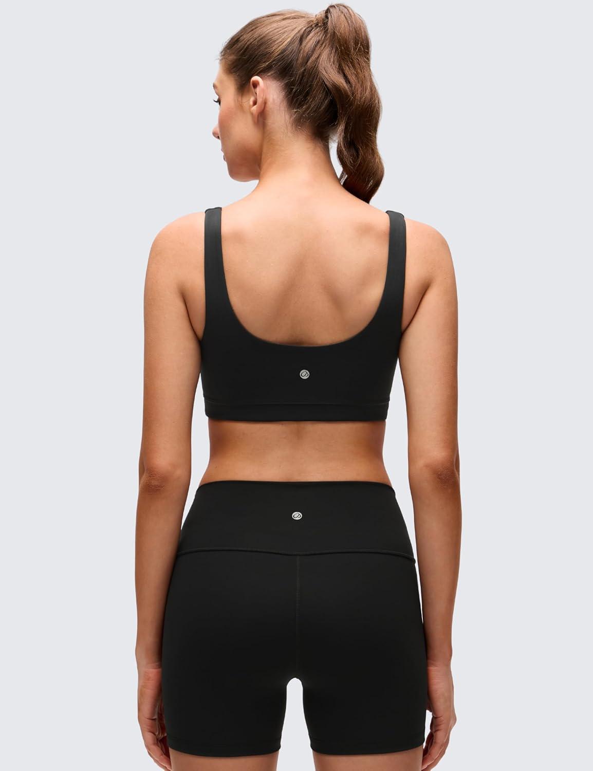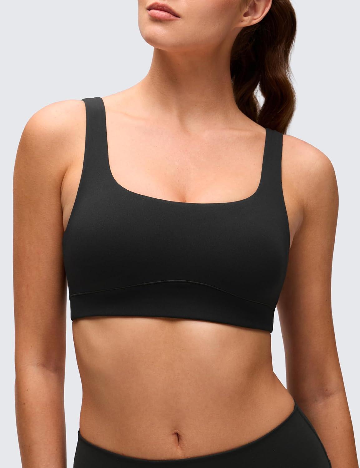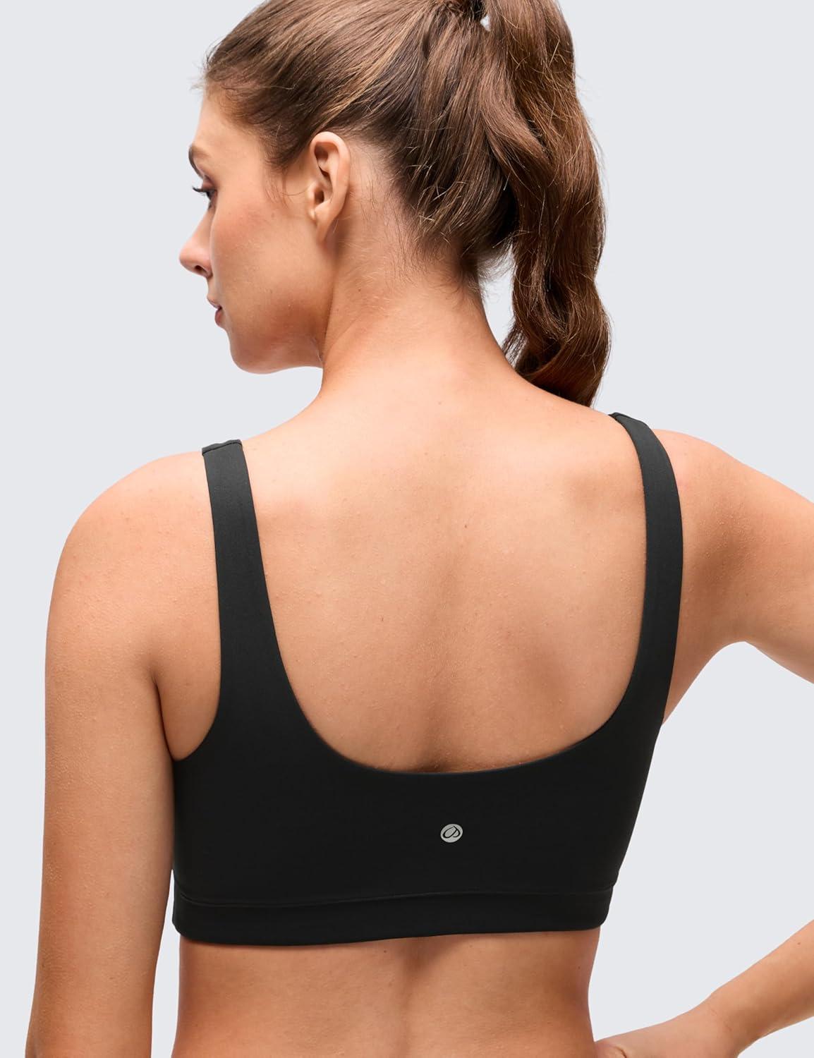 CRZ YOGA Butterluxe Scoop Neck Sports Bras for Women – U Back Padded Wide Strap Wireless Yoga Top(Black)