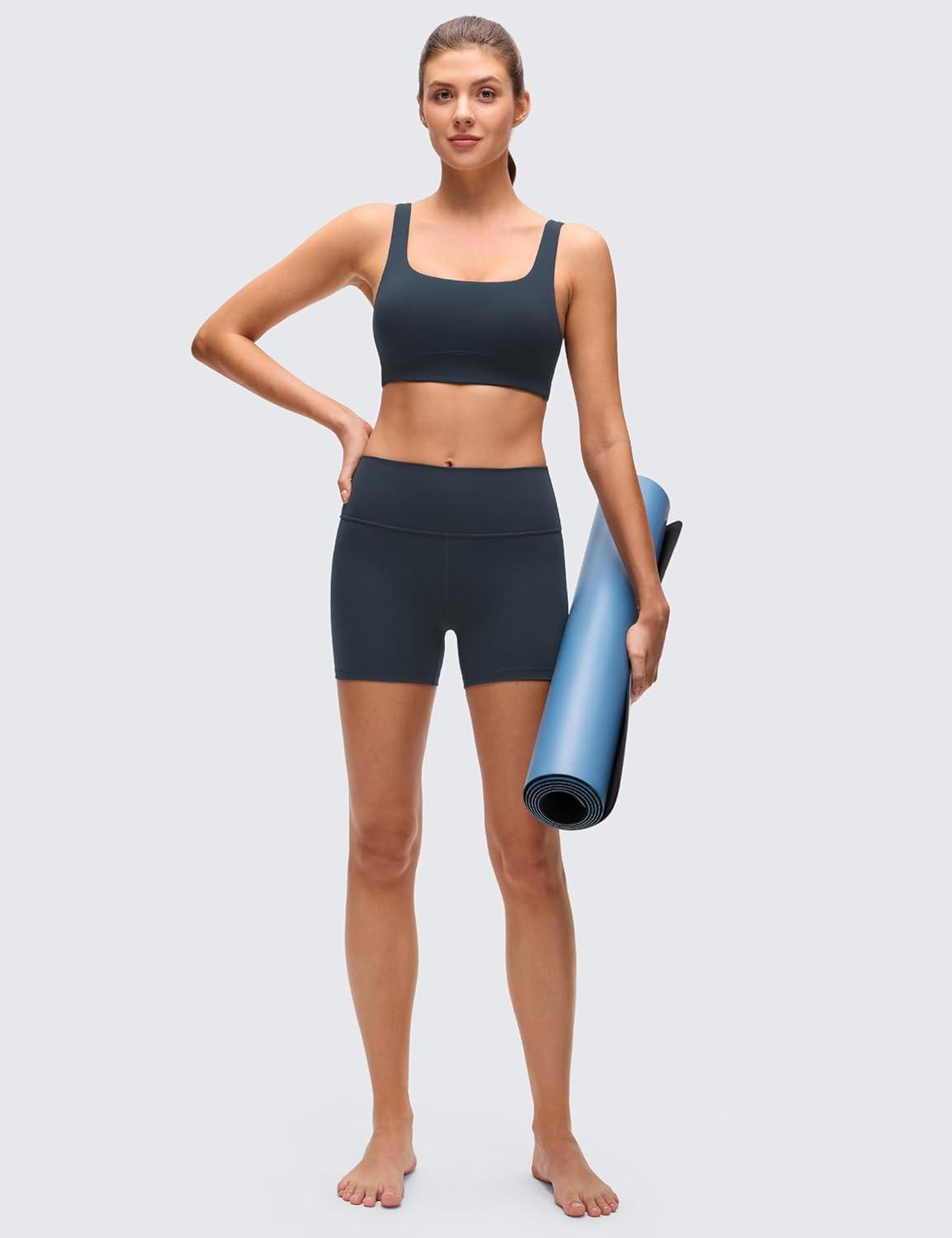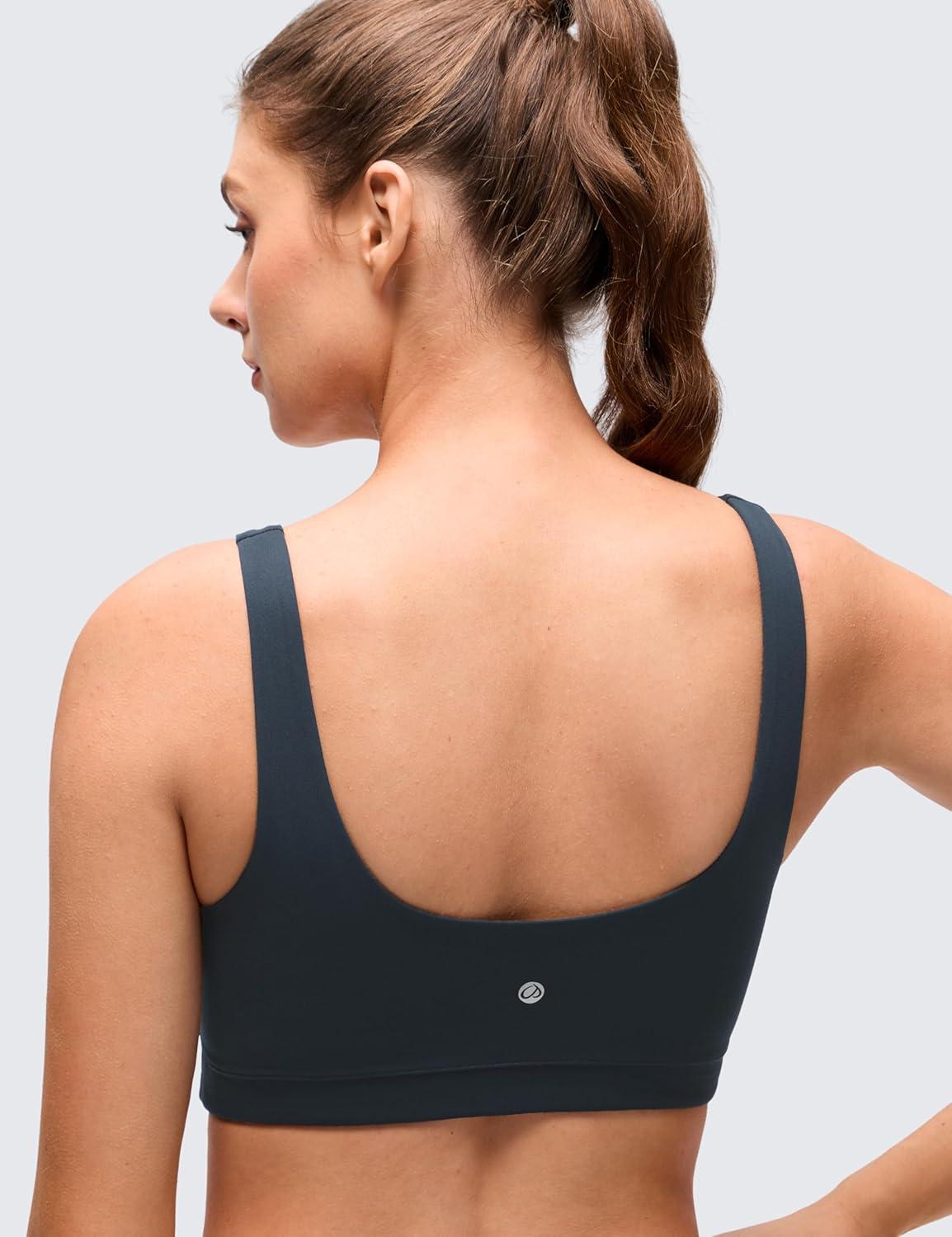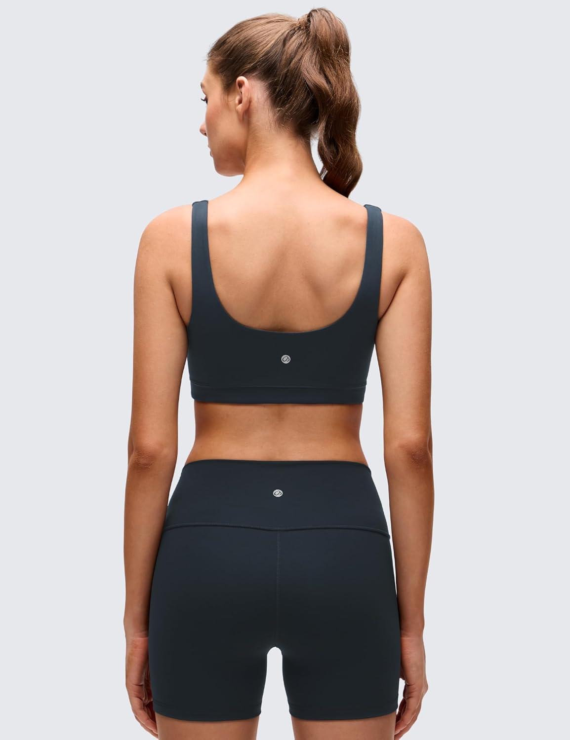 CRZ YOGA Butterluxe Scoop Neck Sports Bras for Women – U Back Padded Wide Strap Wireless Yoga Top(True Navy)