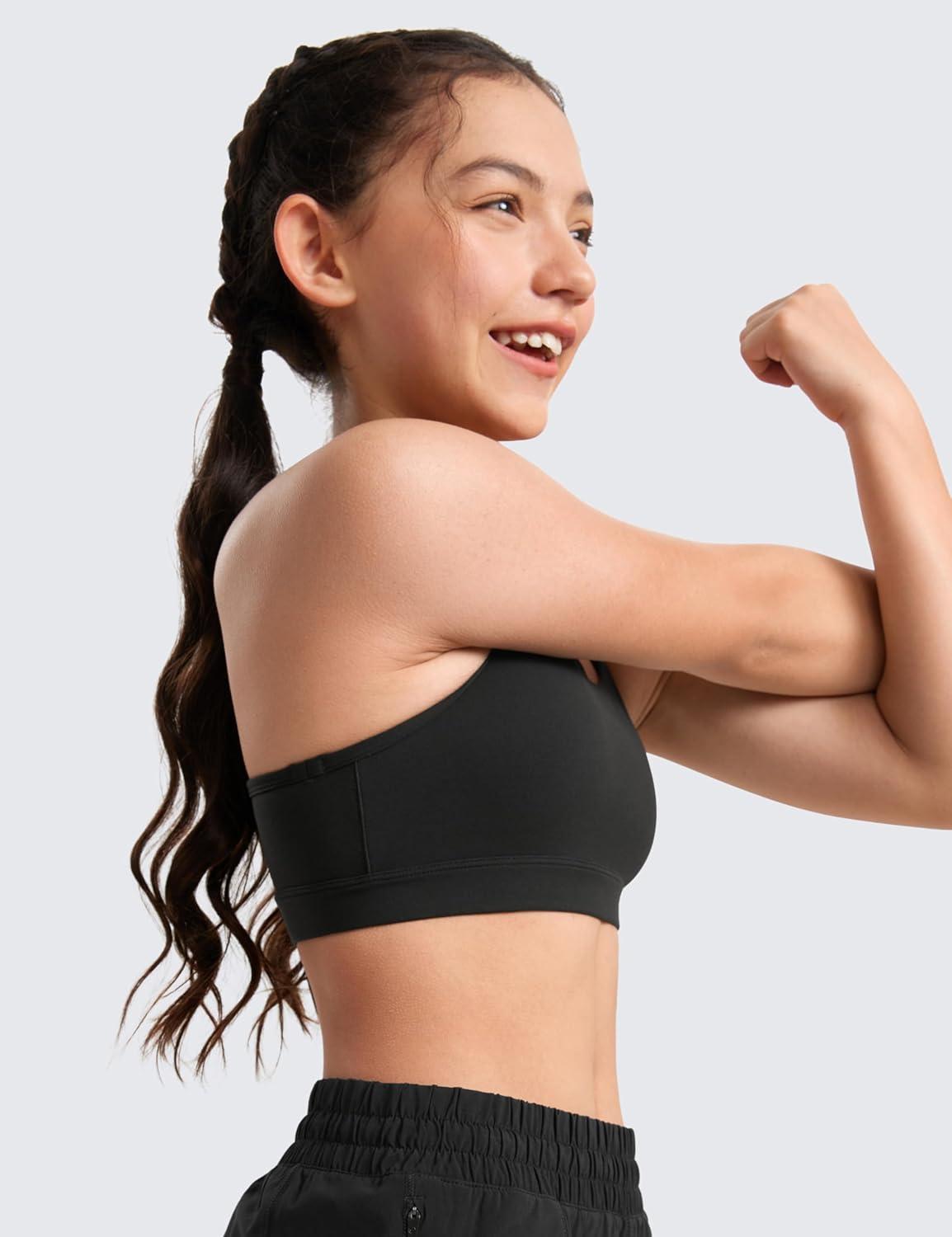 CRZ YOGA Butterluxe Scoop Neck Y Back Sports Bra for Girls – Yoga Athletic Casual Tops Spaghetti Strap Crop Padded Kids Teen(Black)