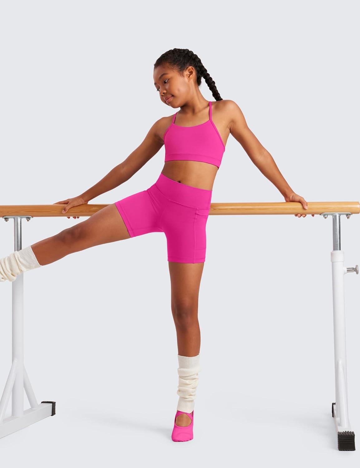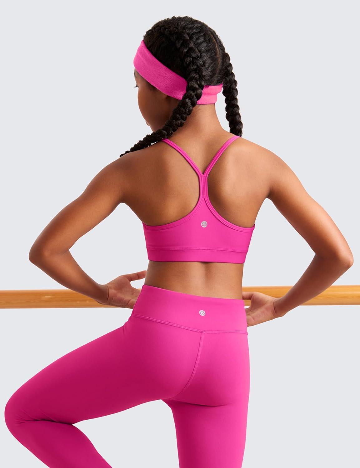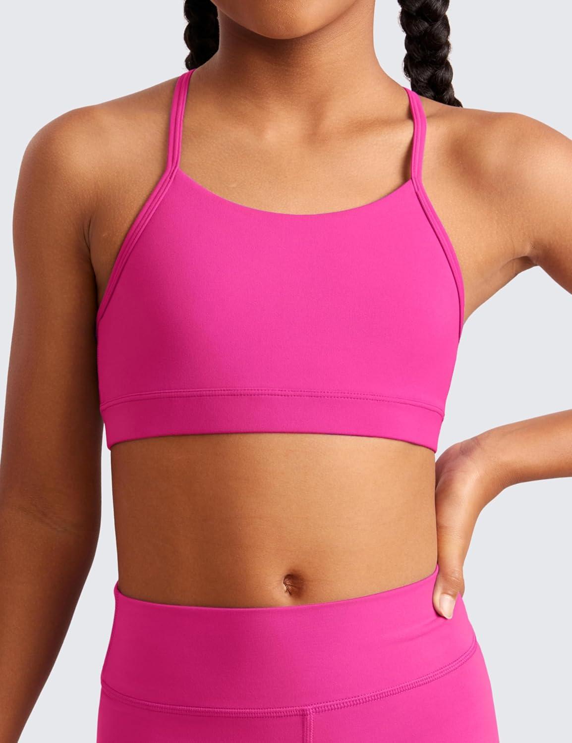 CRZ YOGA Butterluxe Scoop Neck Y Back Sports Bra for Girls – Yoga Athletic Casual Tops Spaghetti Strap Crop Padded Kids Teen(Viva Magenta)