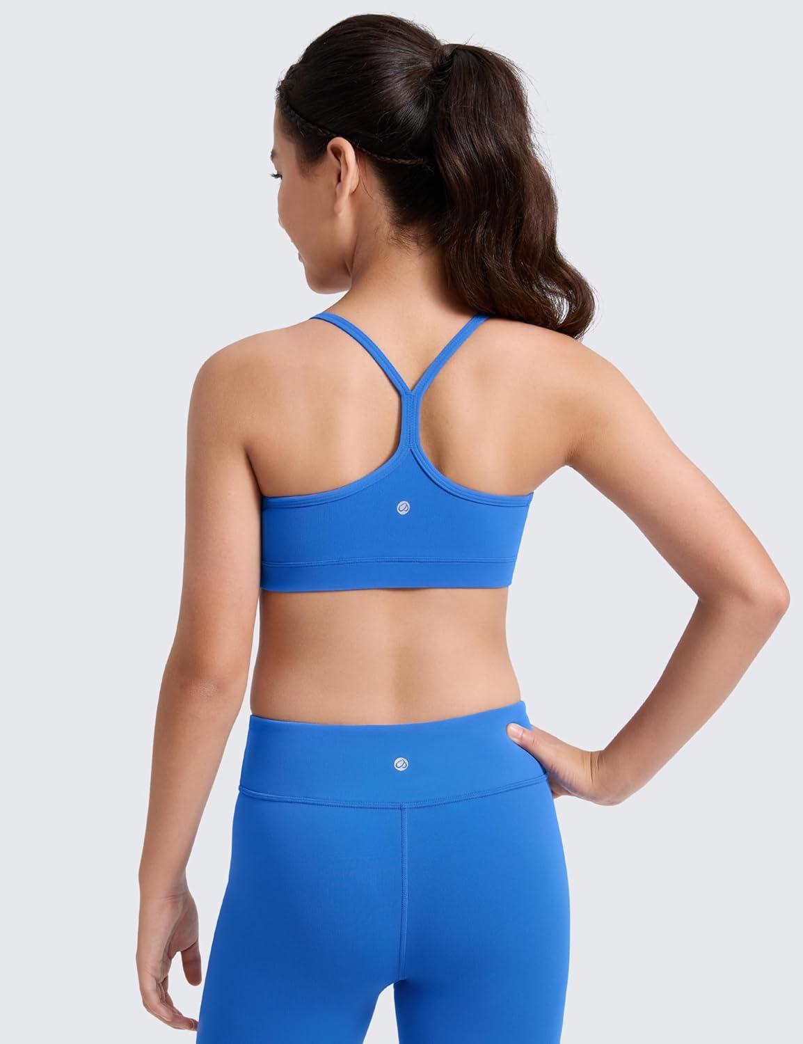 CRZ YOGA Butterluxe Scoop Neck Y Back Sports Bra for Girls – Yoga Athletic Casual Tops Spaghetti Strap Crop Padded Kids Teen(Spectral Blue)