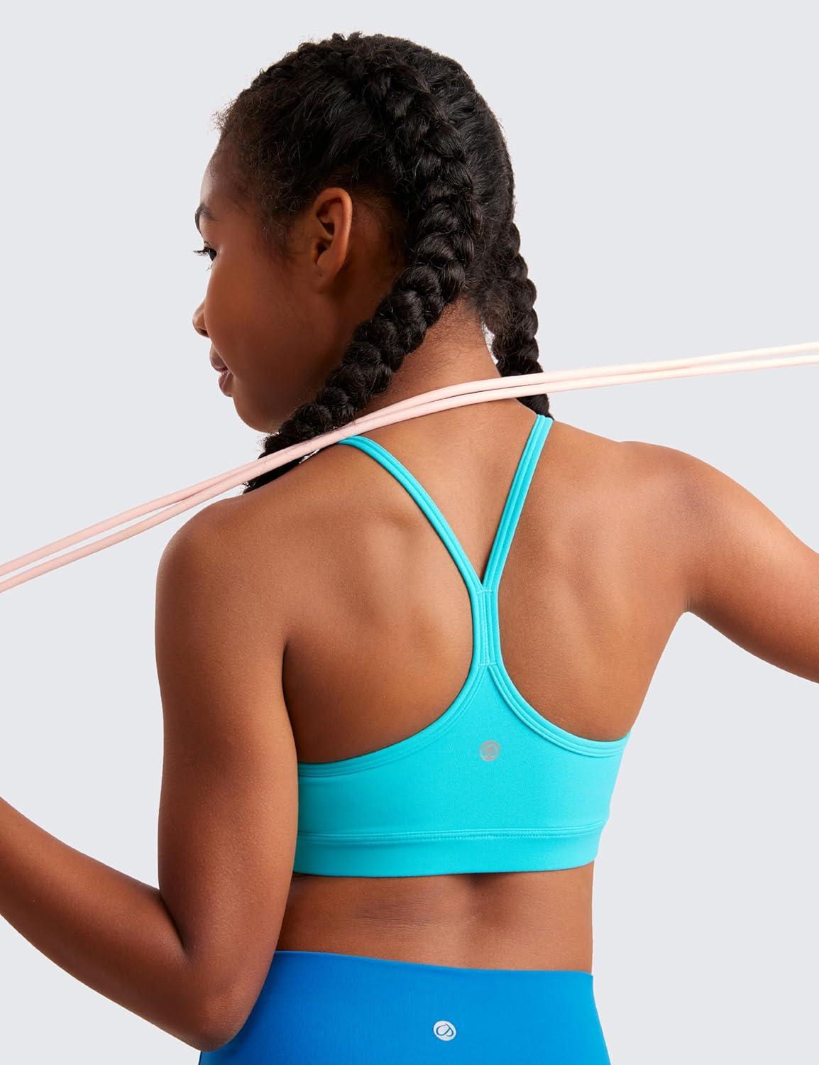 CRZ YOGA Butterluxe Scoop Neck Y Back Sports Bra for Girls – Yoga Athletic Casual Tops Spaghetti Strap Crop Padded Kids Teen(Sparkle Blue)