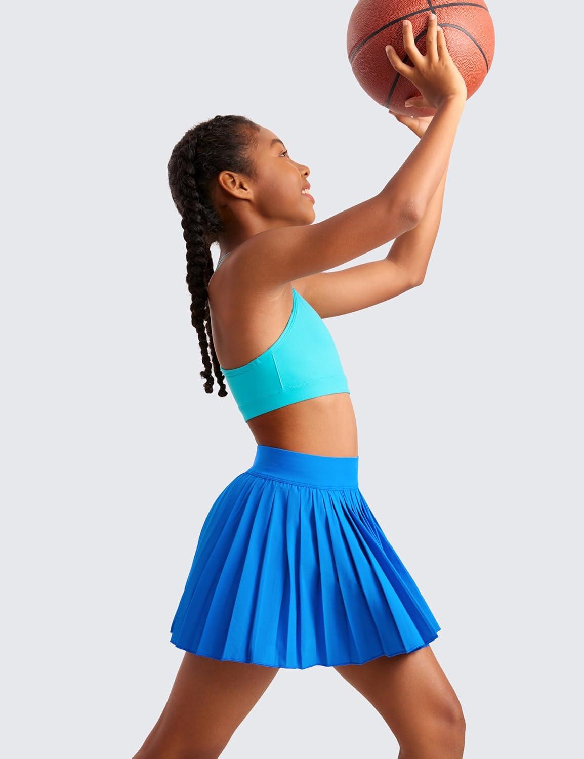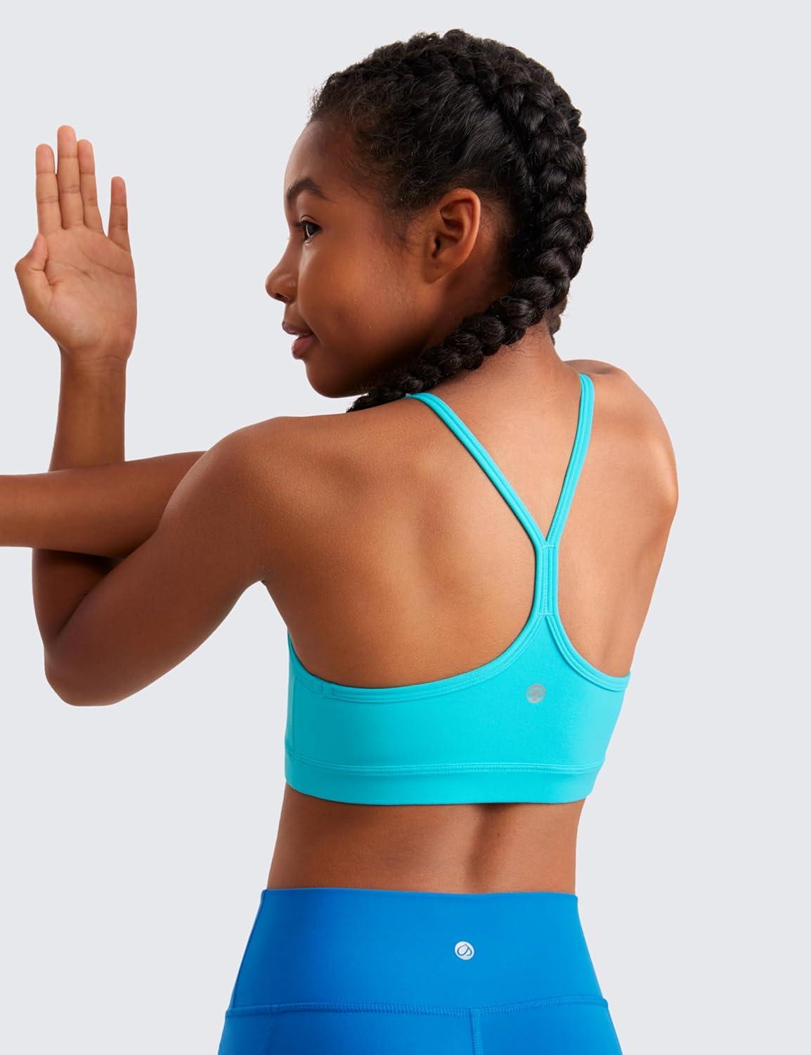 CRZ YOGA Butterluxe Scoop Neck Y Back Sports Bra for Girls – Yoga Athletic Casual Tops Spaghetti Strap Crop Padded Kids Teen(Spectral Blue)
