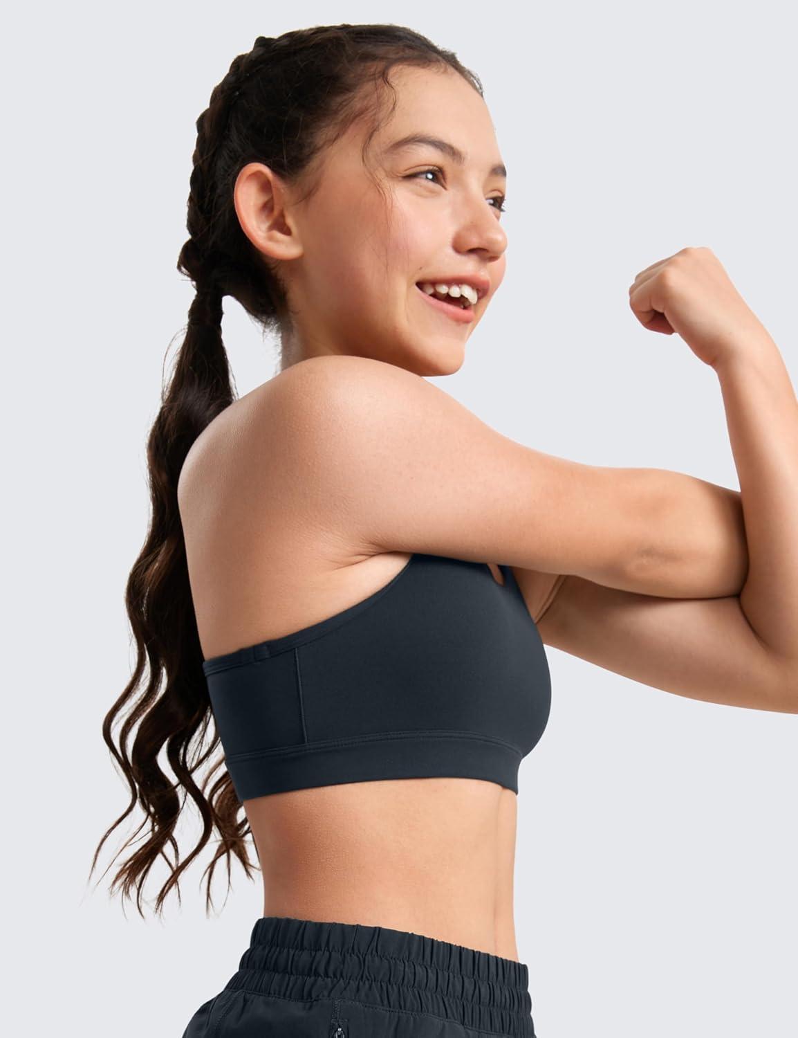 CRZ YOGA Butterluxe Scoop Neck Y Back Sports Bra for Girls – Yoga Athletic Casual Tops Spaghetti Strap Crop Padded Kids Teen(True Navy)