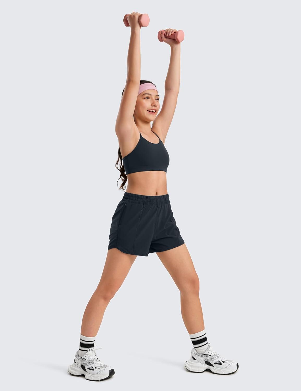 imageCRZ YOGA Butterluxe Scoop Neck Y Back Sports Bra for Girls  Yoga Athletic Casual Tops Spaghetti Strap Crop Padded Kids TeenTrue Navy