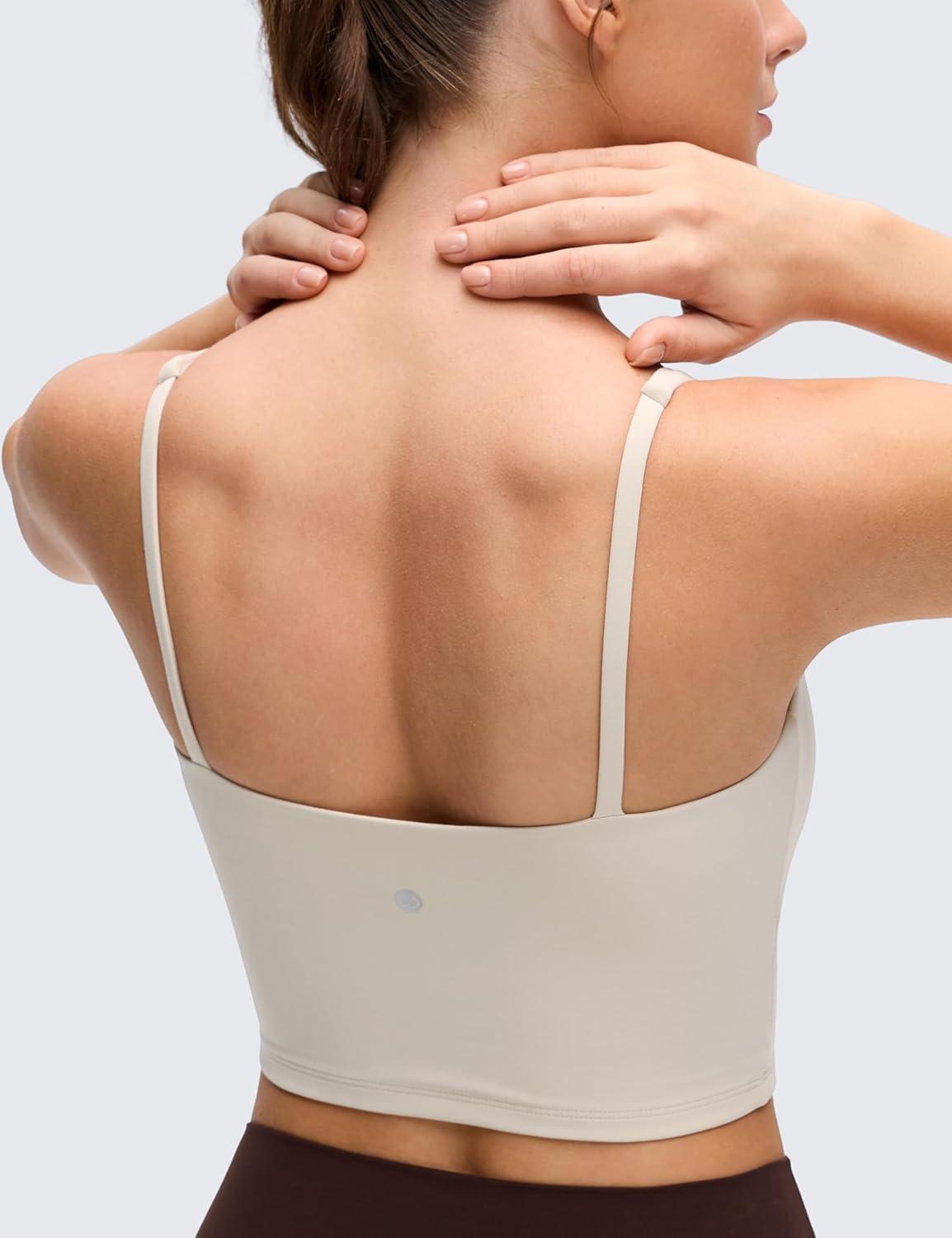 CRZ YOGA Butterluxe Soft Double Lined Cami Tank Tops for Women – Yoga Casual Going Out Crop Square Neck Sleeveless Shirts(Mojave Tan)