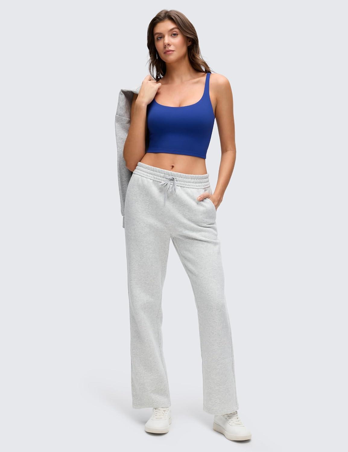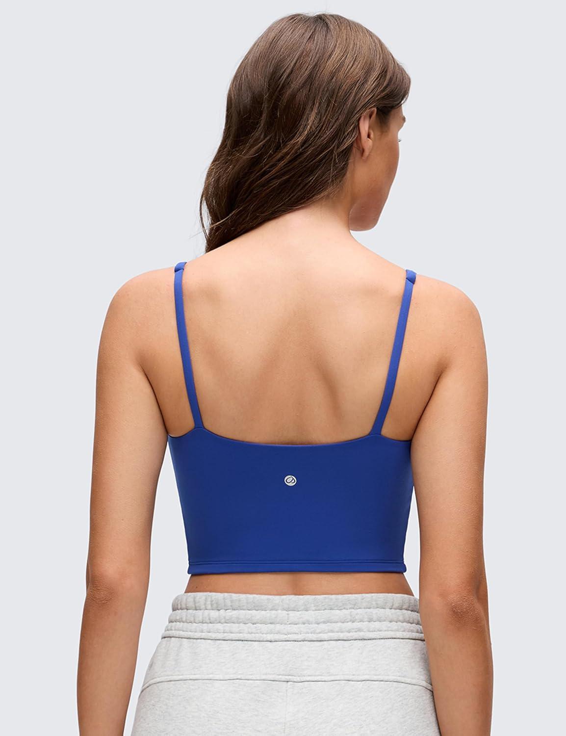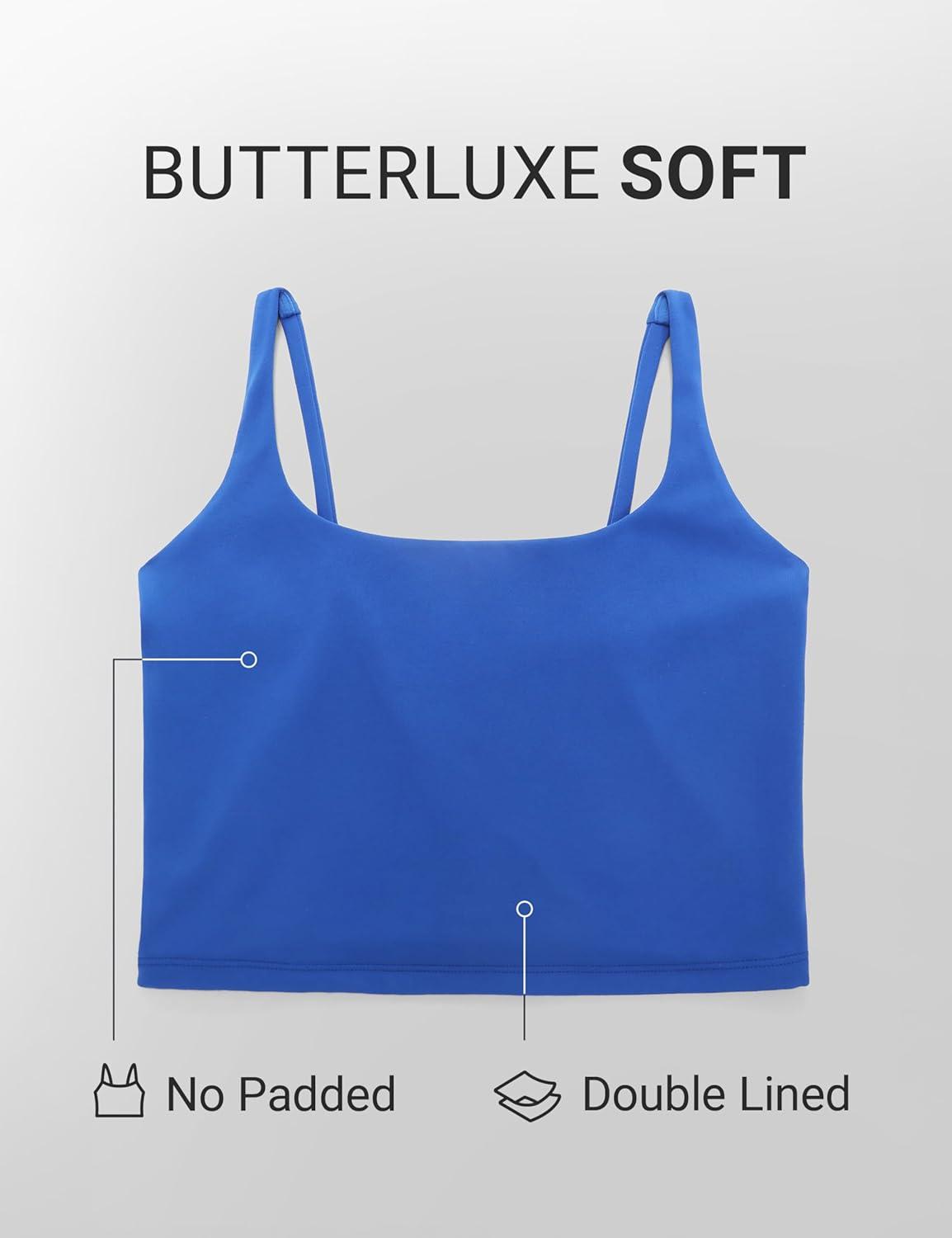 CRZ YOGA Butterluxe Soft Double Lined Cami Tank Tops for Women – Yoga Casual Going Out Crop Square Neck Sleeveless Shirts(Waves Blue)