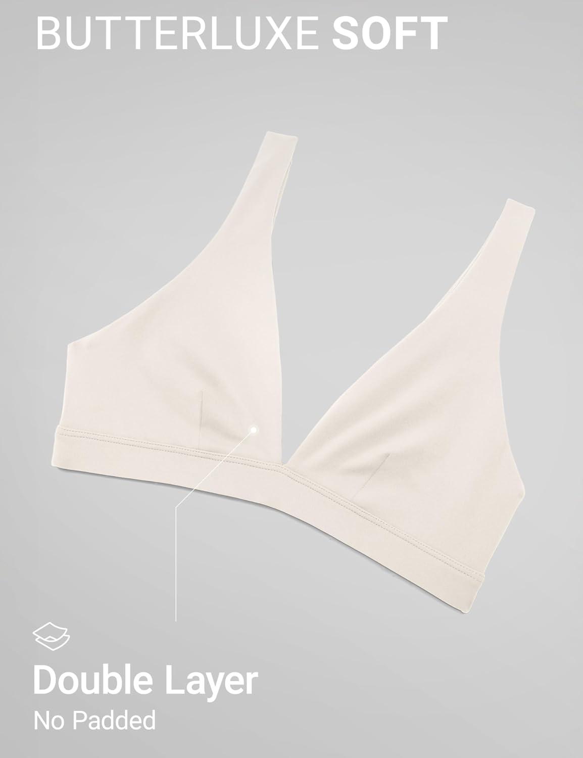 imageCRZ YOGA Butterluxe Soft Double Lined Deep V Neck Sports Bras for Women  Open Back Yoga Crop Top Casual Non PaddedMilky White