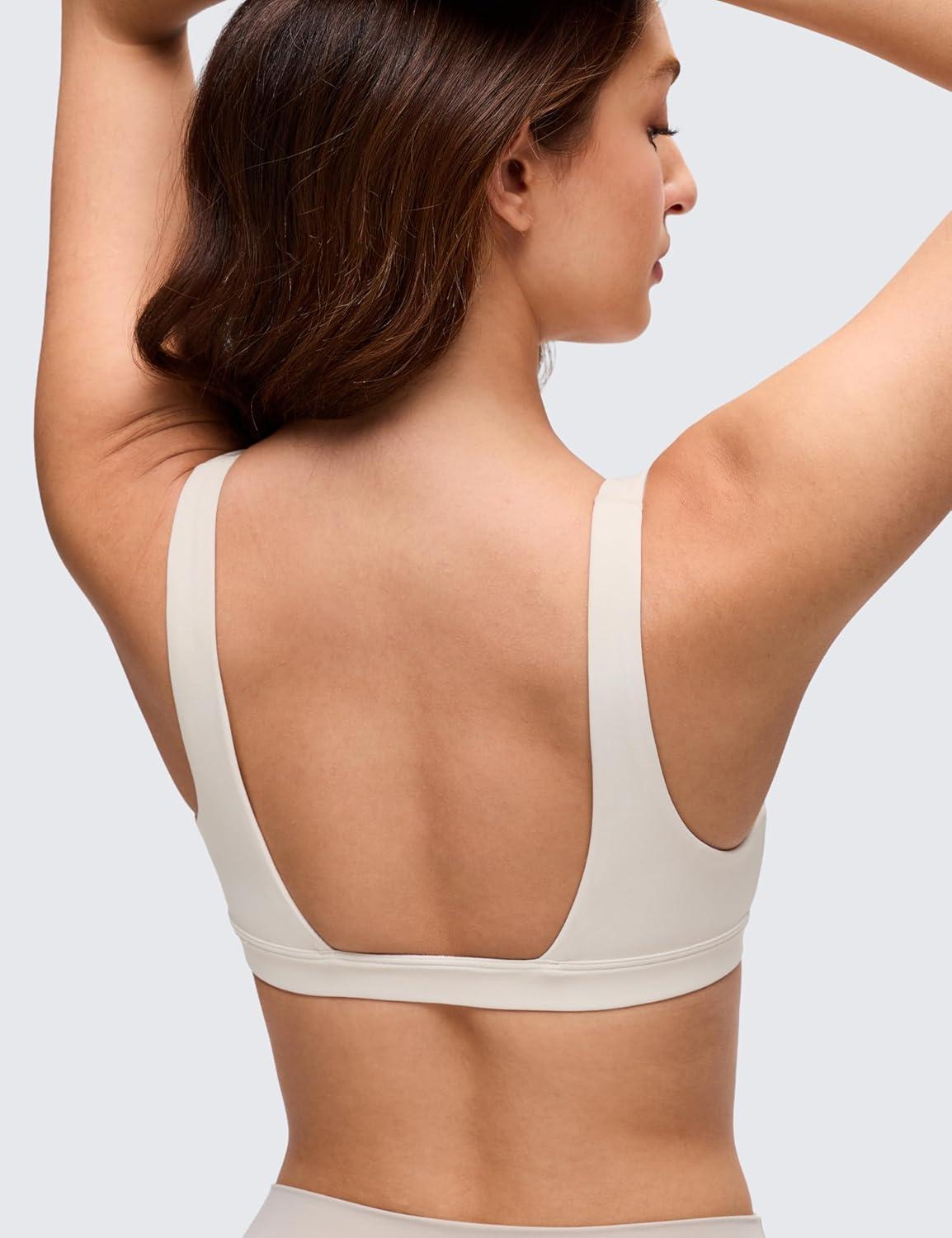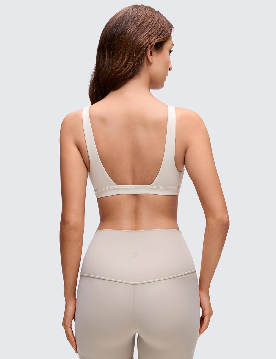 CRZ YOGA Butterluxe Soft Double Lined Deep V Neck Sports Bras for Women – Open Back Yoga Crop Top Casual Non Padded(Milky White)