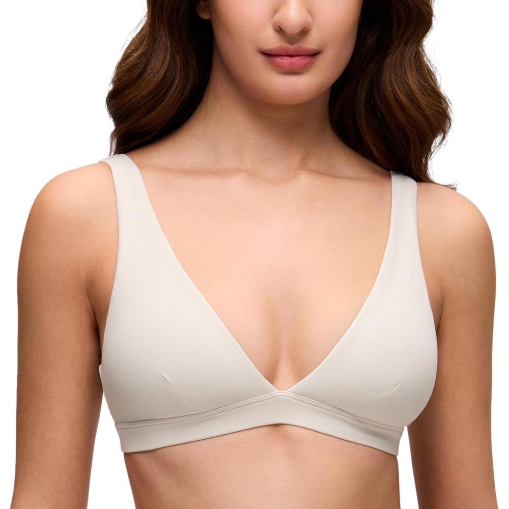 CRZ YOGA Butterluxe Soft Double Lined Deep V Neck Sports Bras for Women - Open Back Yoga Crop Top Casual Non Padded(Milky White)
