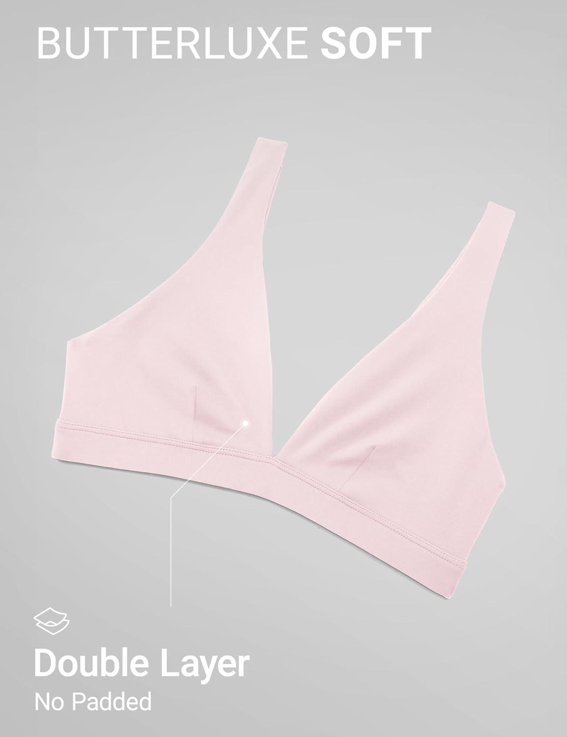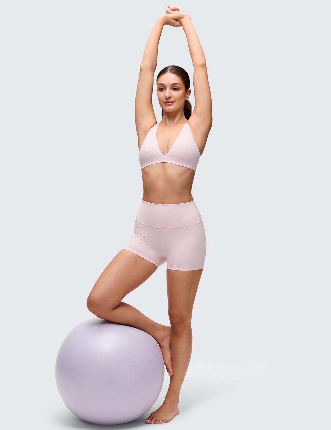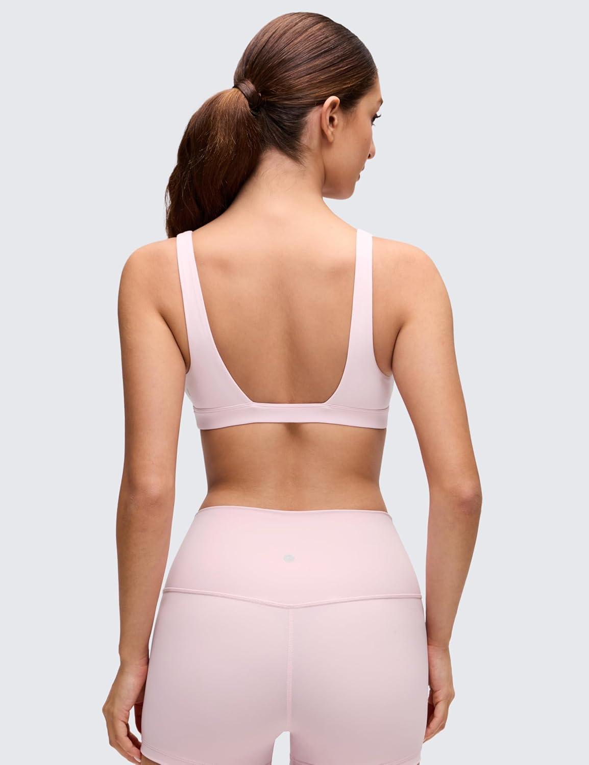 CRZ YOGA Butterluxe Soft Double Lined Deep V Neck Sports Bras for Women – Open Back Yoga Crop Top Casual Non Padded(Strawberry Pink)