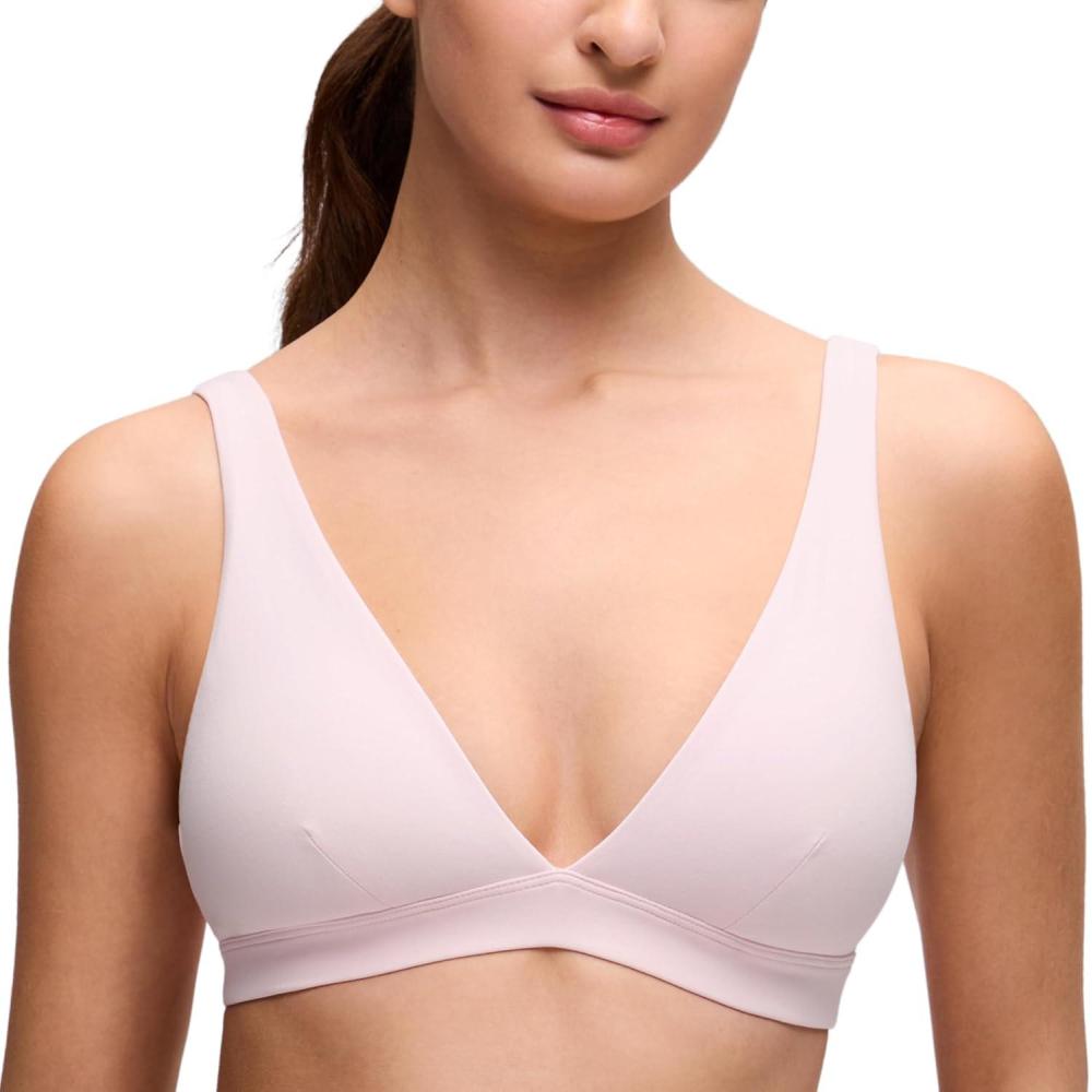 CRZ YOGA Butterluxe Soft Double Lined Deep V Neck Sports Bras for Women - Open Back Yoga Crop Top Casual Non Padded(Strawberry Pink)