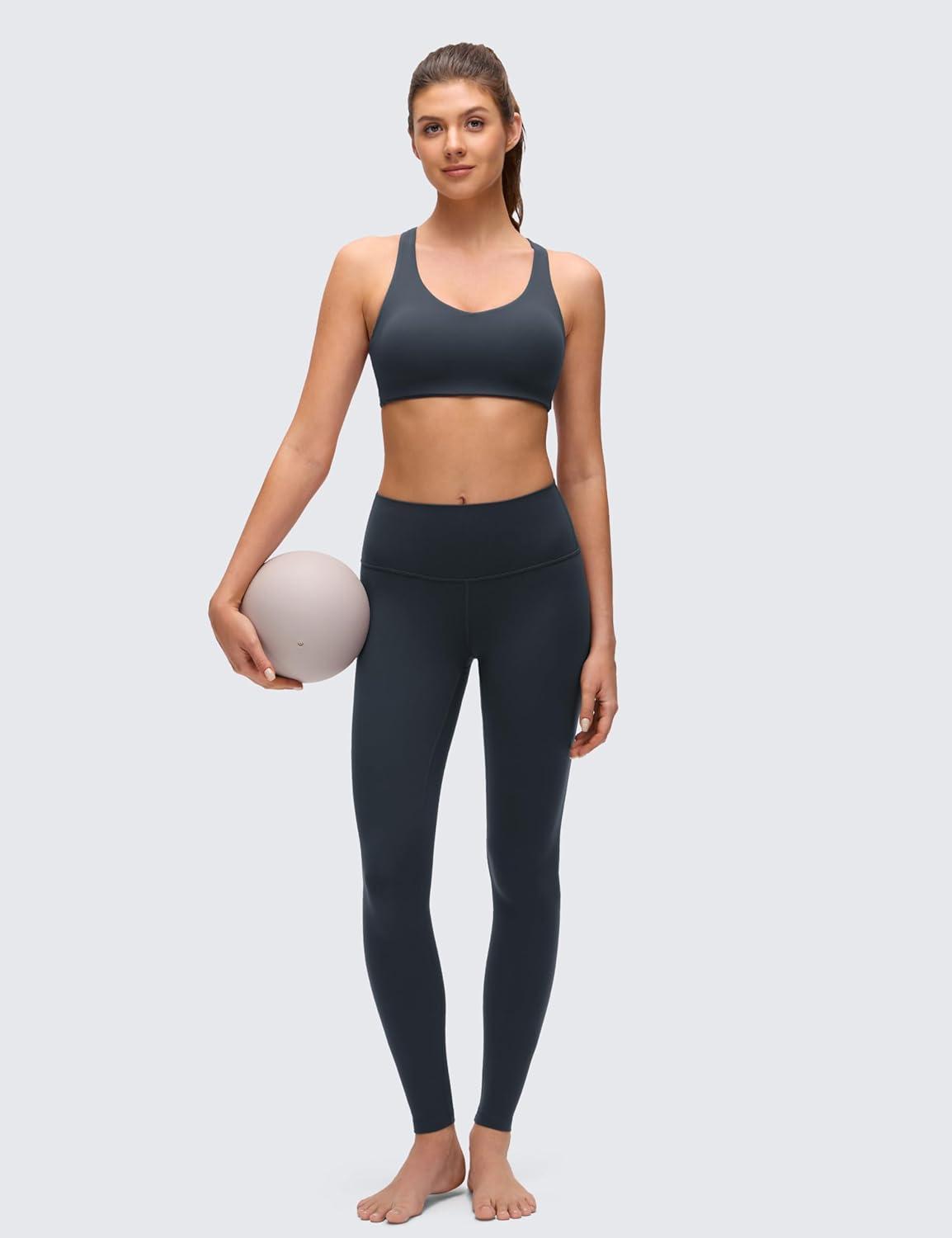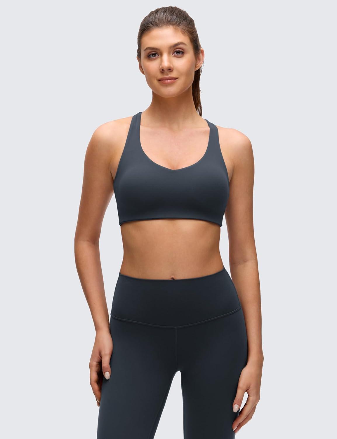 CRZ YOGA Butterluxe Strappy Sports Bras for Women – Padded V Neck Wireless Criss Cross Back Yoga Top(True Navy)