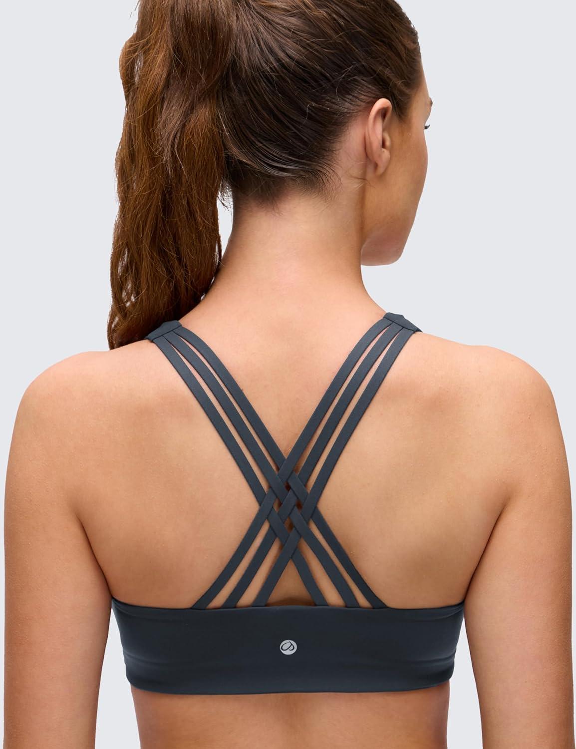 imageCRZ YOGA Butterluxe Strappy Sports Bras for Women  Padded V Neck Wireless Criss Cross Back Yoga TopTrue Navy