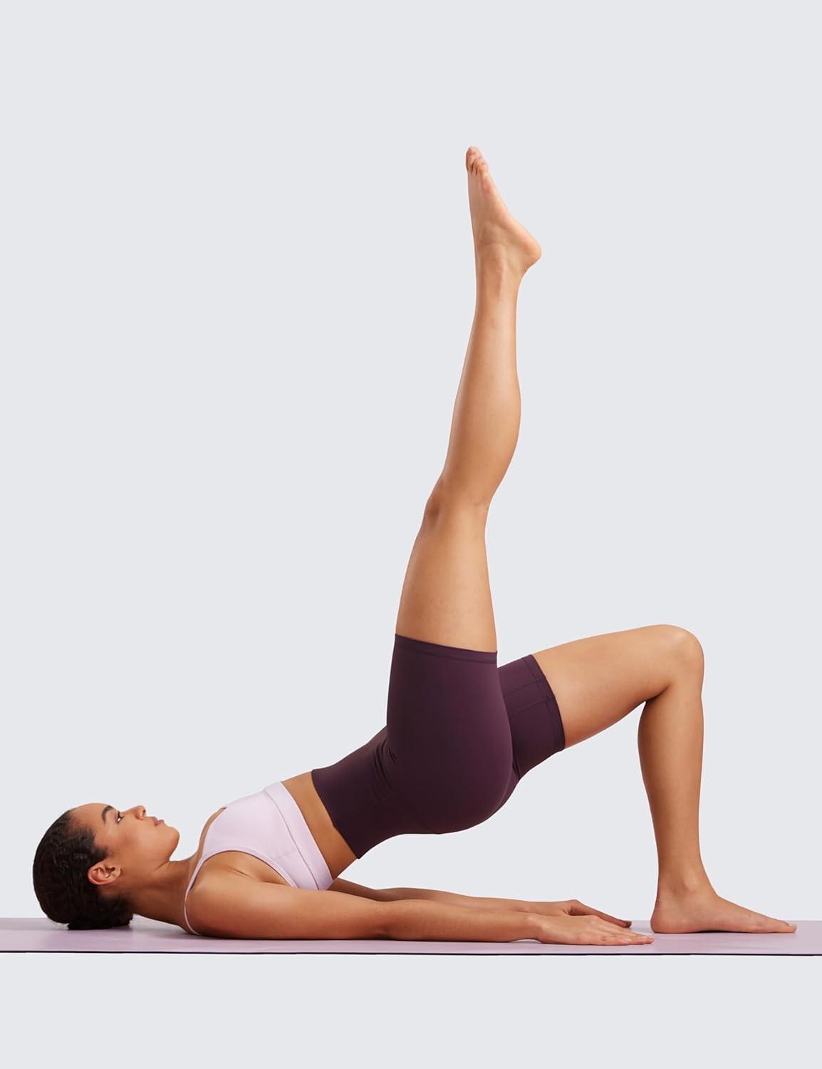 CRZ YOGA Butterluxe Super High Waist Biker Shorts 6"- Yoga Workout Womens Buttery Soft Over Belly(Deep Purple)