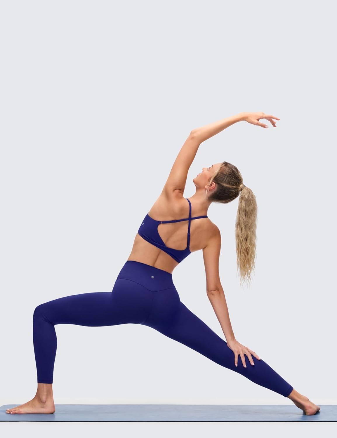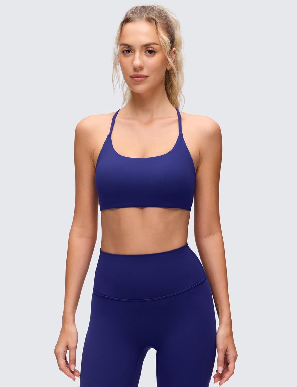 CRZ YOGA Butterluxe Twist Cross Back Sports Bras for Women – U Neck Padded Adjustable Spaghetti Straps Yoga Top(Larkspur Blue)