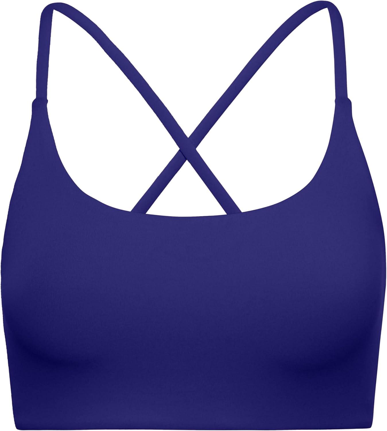 CRZ YOGA Butterluxe Twist Cross Back Sports Bras for Women - U Neck Padded Adjustable Spaghetti Straps Yoga Top(Larkspur Blue)