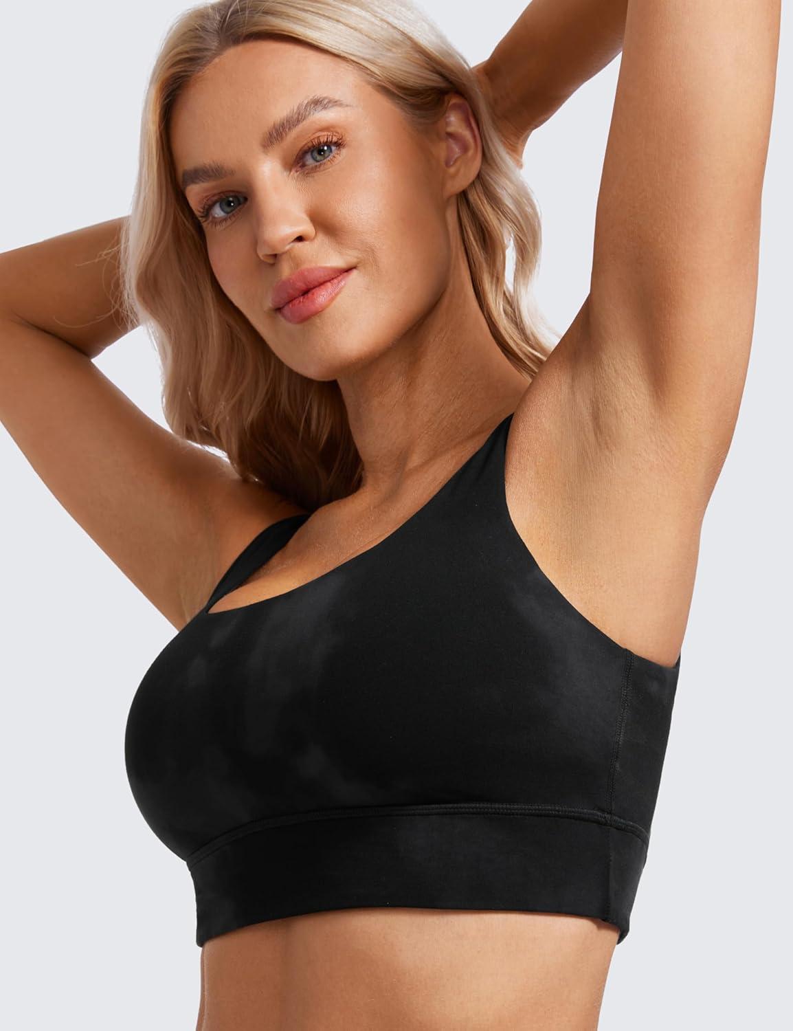 CRZ YOGA Butterluxe U Back Longline Sports Bras for Women – Scoop Neck Padded Yoga Workout Crop Top with Built in Pads(Black Tie Dye Flowers)