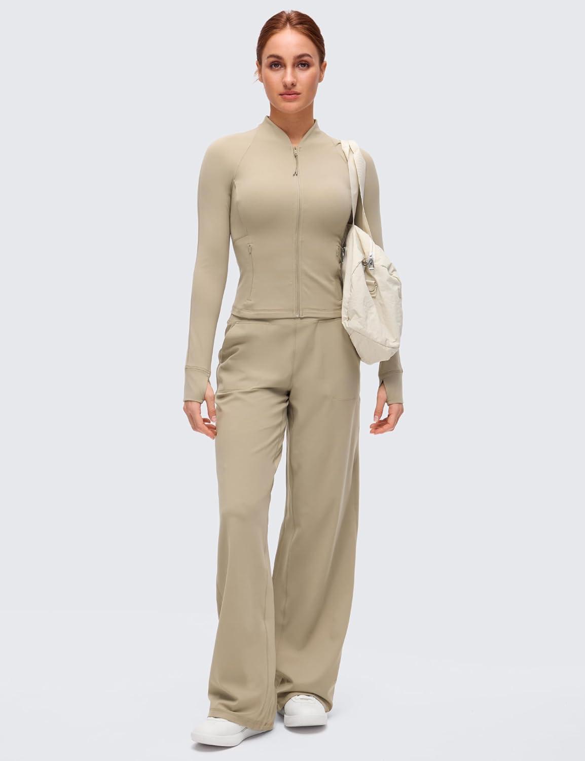 CRZ YOGA Butterluxe V-Neck Jackets for Women – Full Zip Athletic Track Tops with Thumb Holes Pockets(Oak)