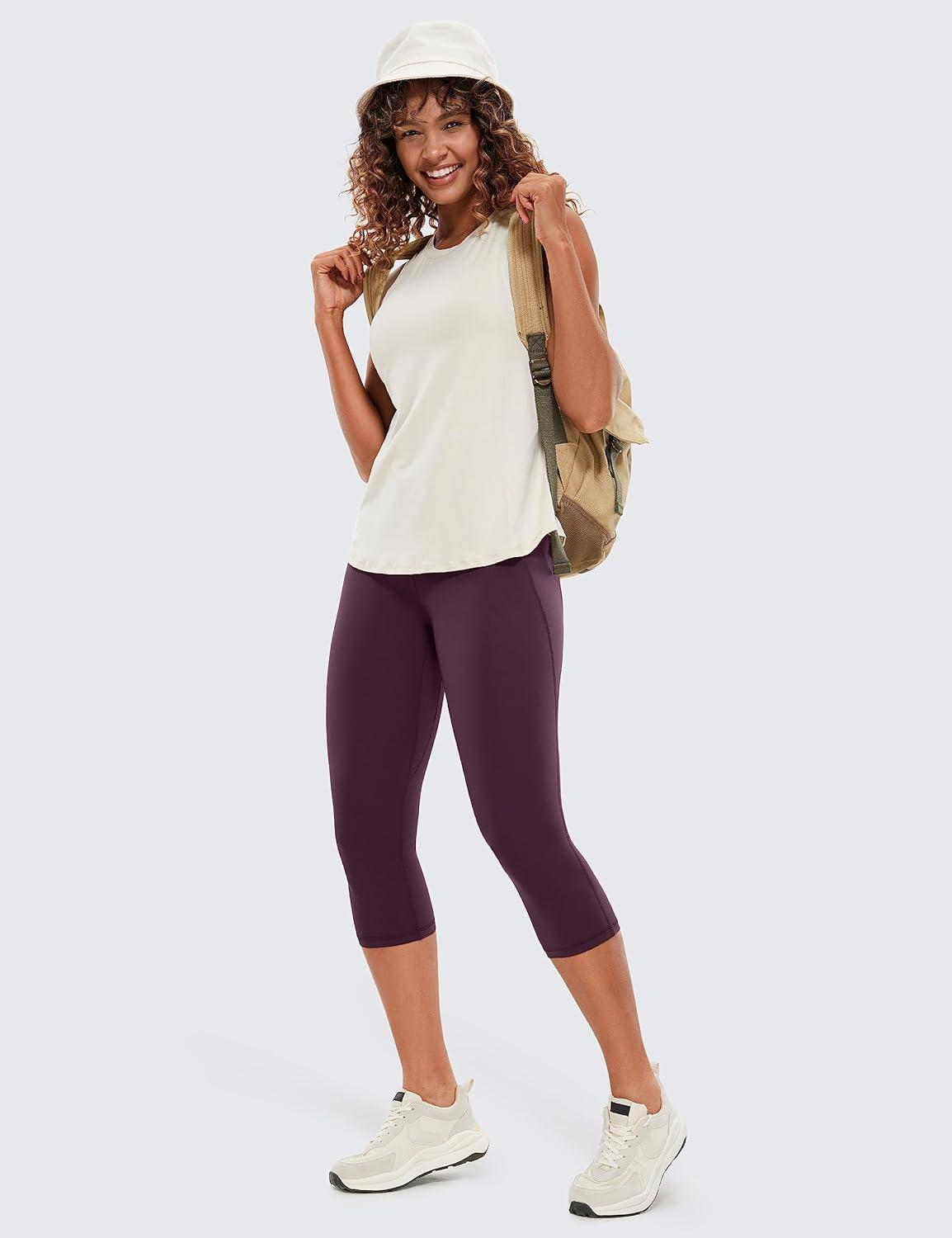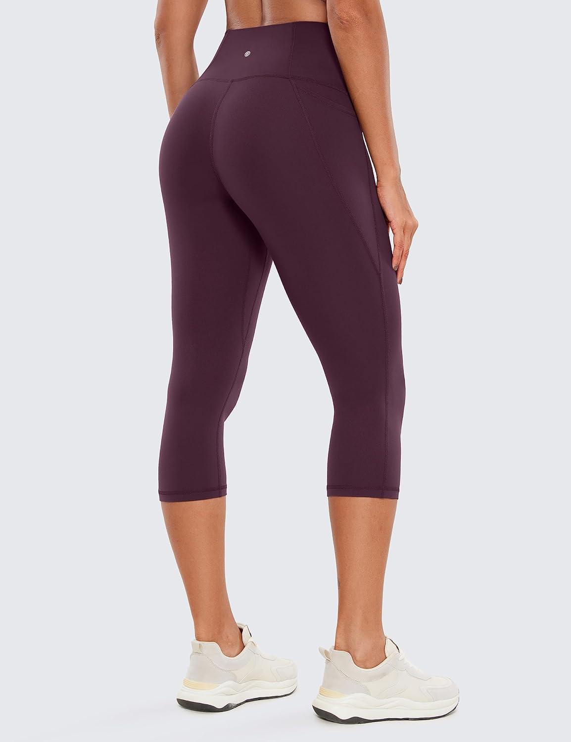 CRZ YOGA Butterluxe Workout Capri Leggings Pockets 19″ – High Waisted Gym Womens Yoga Crop Pants Buttery Soft(Deep Purple)
