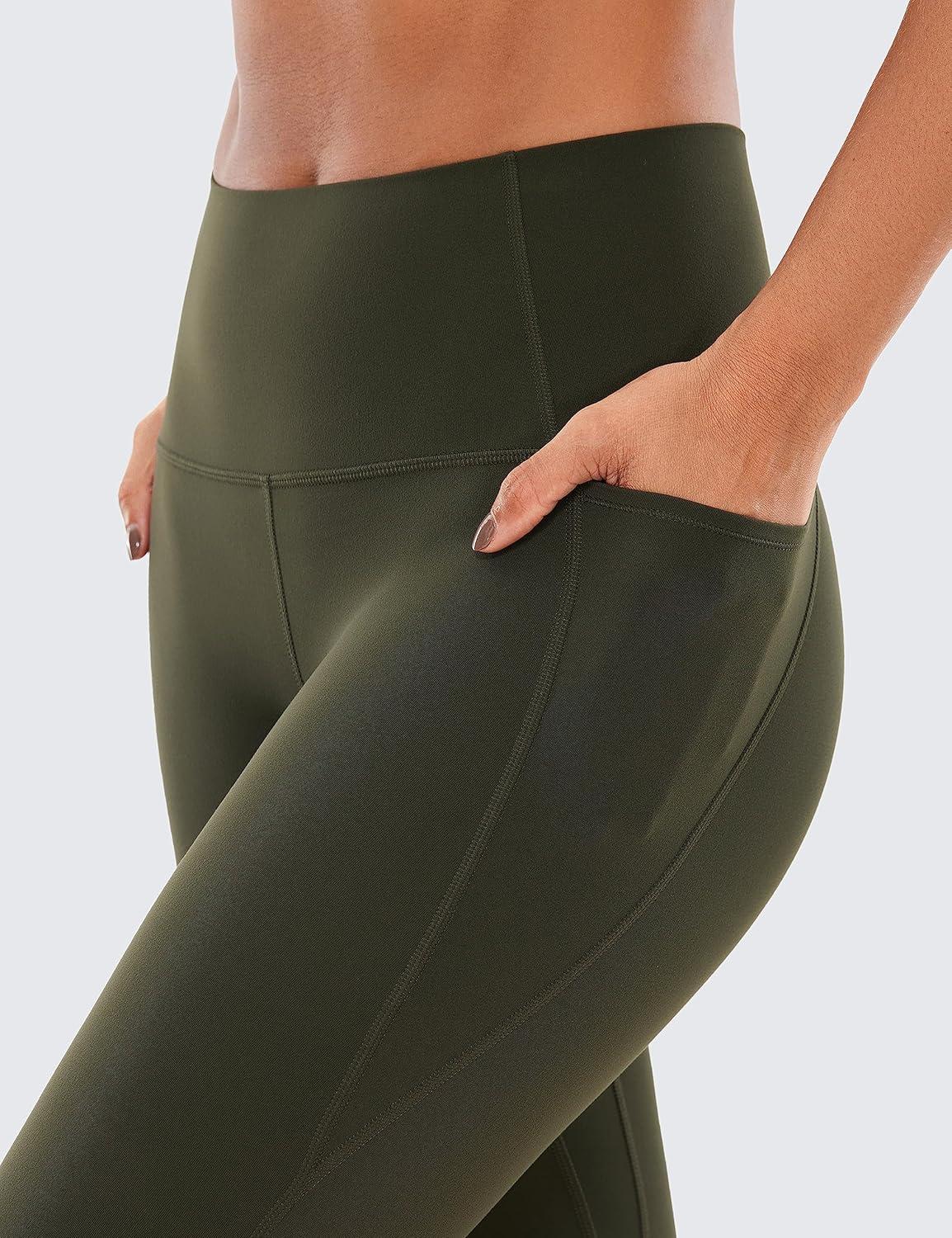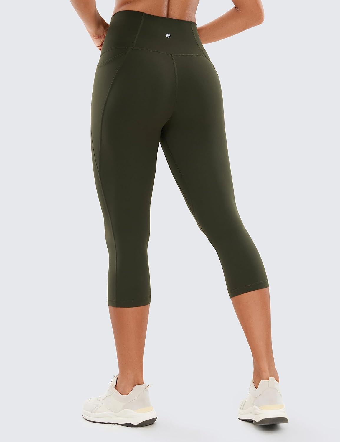 CRZ YOGA Butterluxe Workout Capri Leggings Pockets 19″ – High Waisted Gym Womens Yoga Crop Pants Buttery Soft(Olive Green)