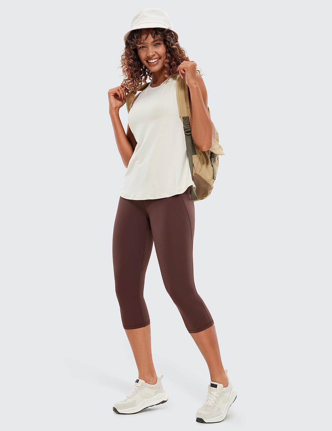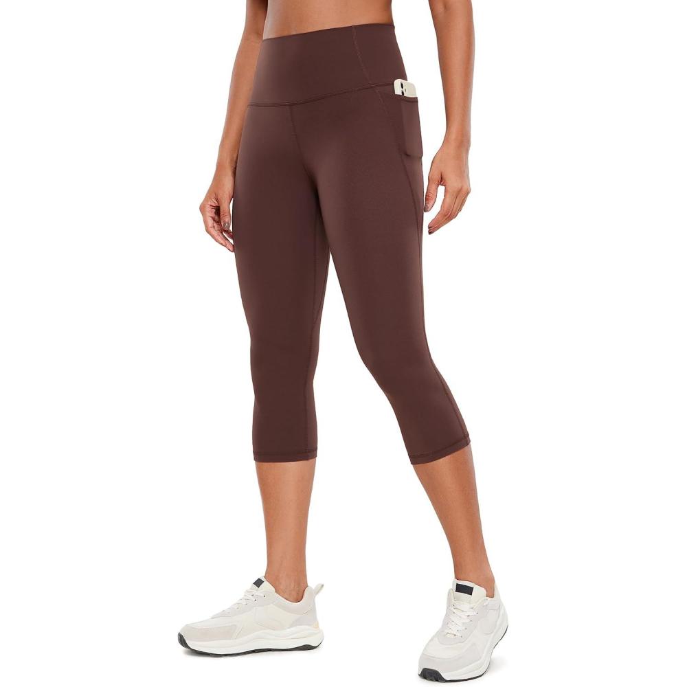 CRZ YOGA Butterluxe Workout Capri Leggings Pockets 19″ – High Waisted Gym Womens Yoga Crop Pants Buttery Soft(Taupe)