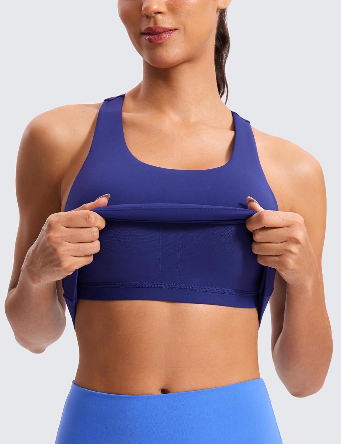 imageCRZ YOGA Butterluxe Workout Racerback Tank Tops for Women  Padded Athletic Spandex Yoga Shirts with Built in BraLarkspur Blue