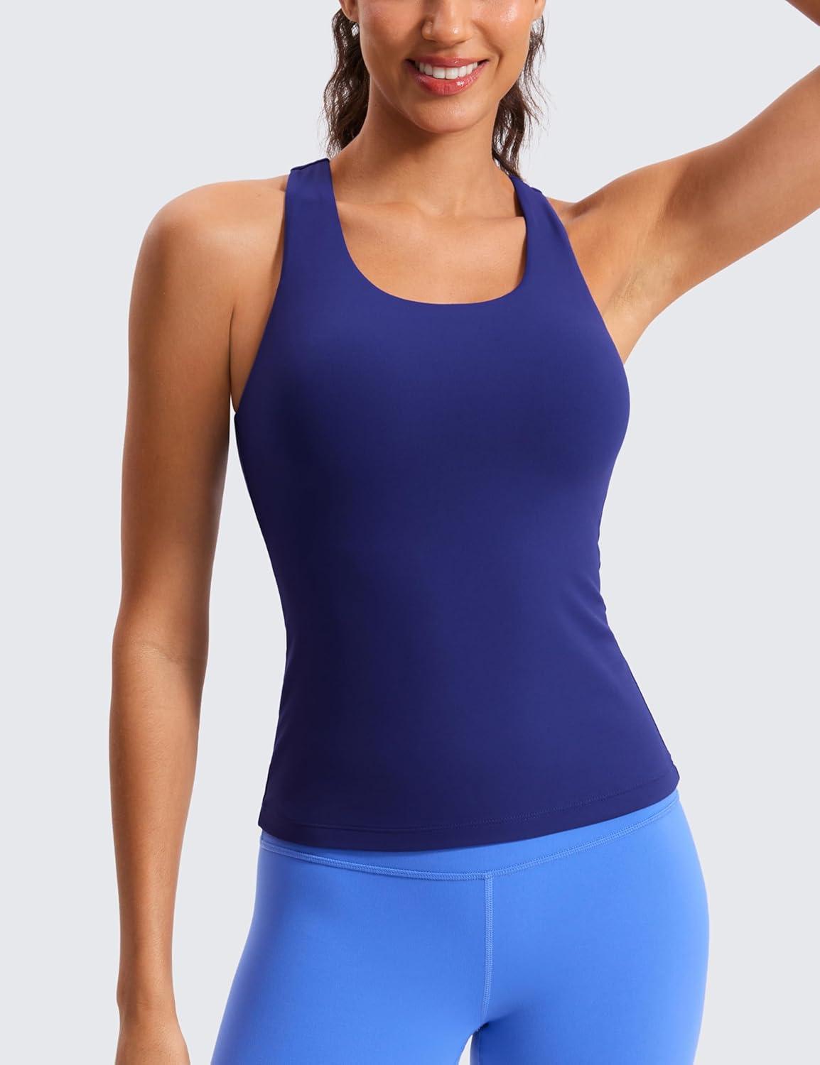 CRZ YOGA Butterluxe Workout Racerback Tank Tops for Women - Padded Athletic Spandex Yoga Shirts with Built in Bra(Larkspur Blue)