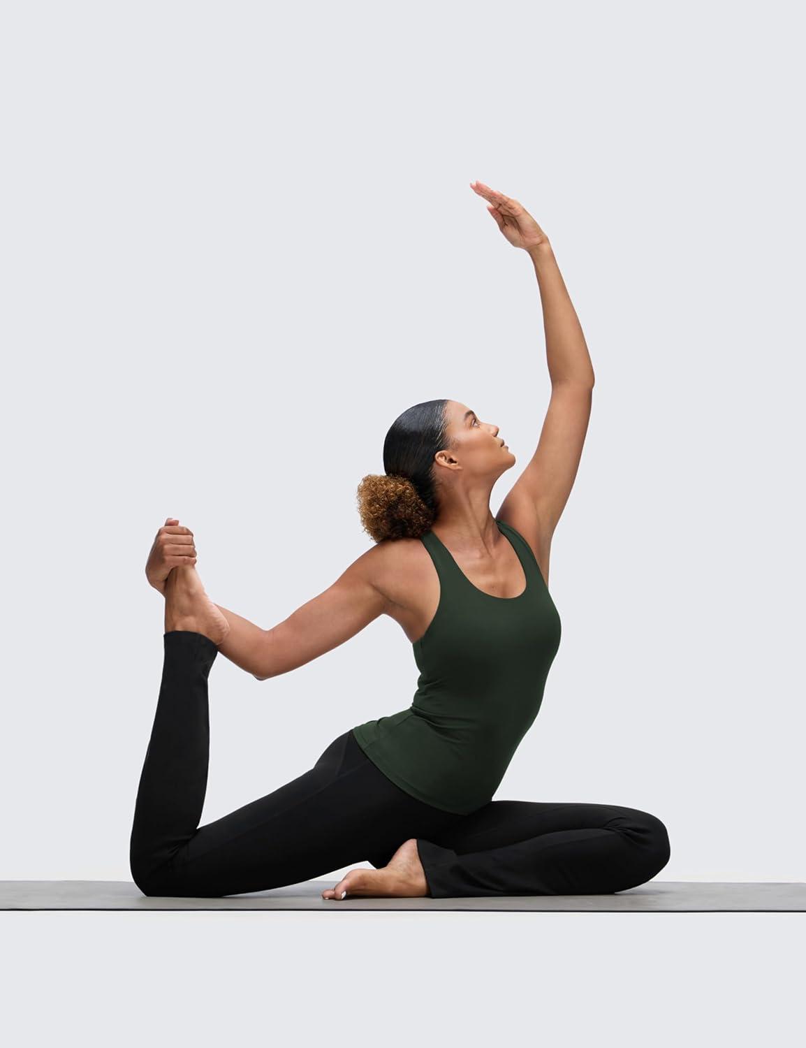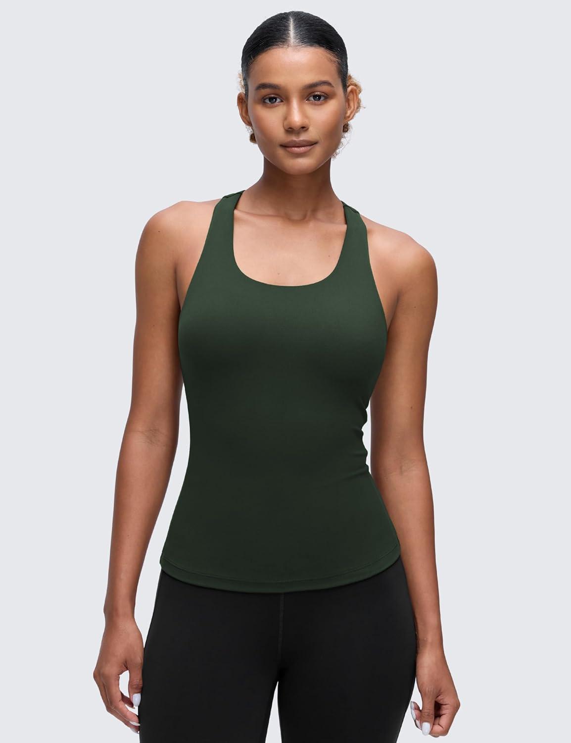 CRZ YOGA Butterluxe Workout Racerback Tank Tops for Women - Padded Athletic Spandex Yoga Shirts with Built in Bra(Legend Green)