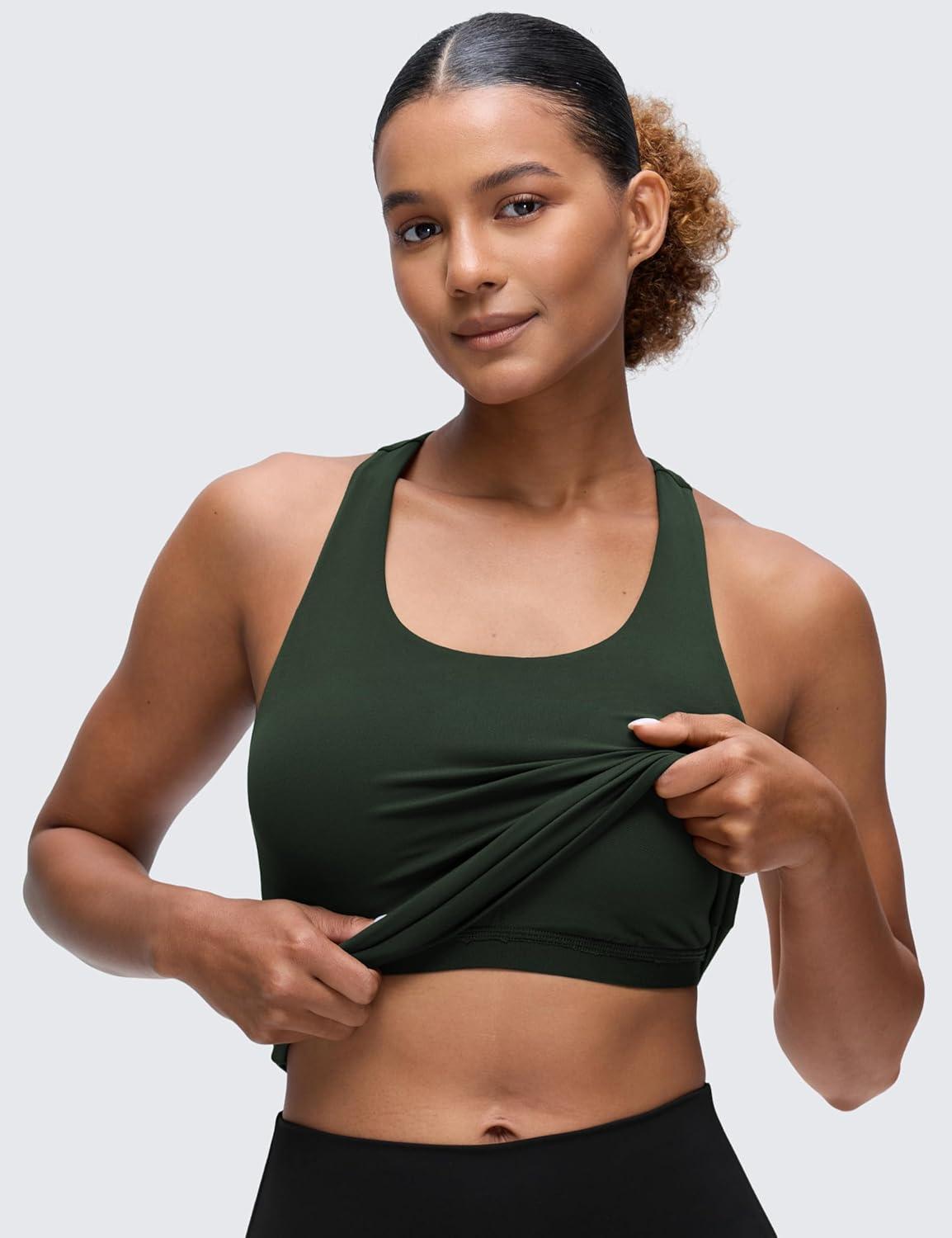 CRZ YOGA Butterluxe Workout Racerback Tank Tops for Women – Padded Athletic Spandex Yoga Shirts with Built in Bra(Legend Green)