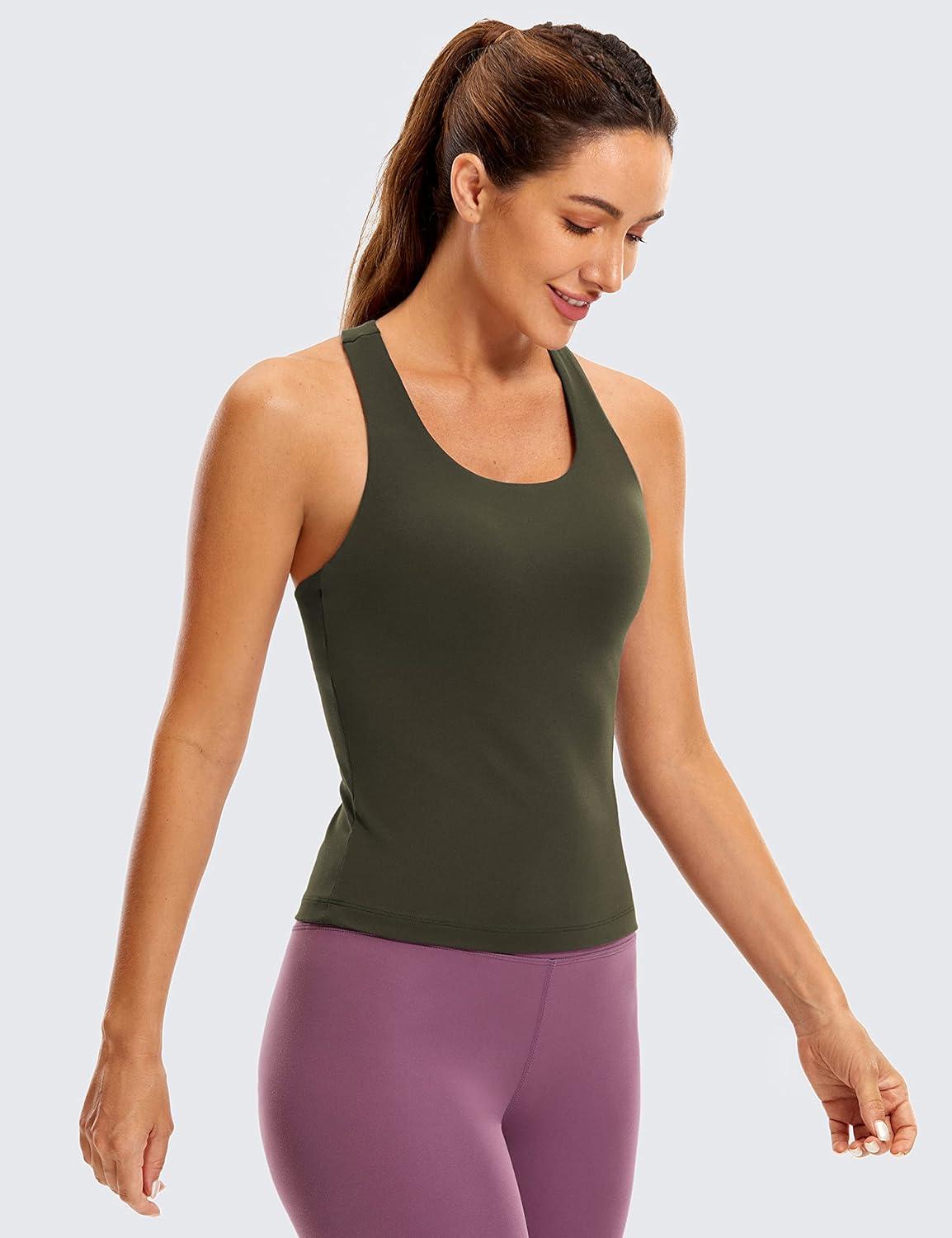 CRZ YOGA Butterluxe Workout Racerback Tank Tops for Women – Padded Athletic Spandex Yoga Shirts with Built in Bra(Olive Green)
