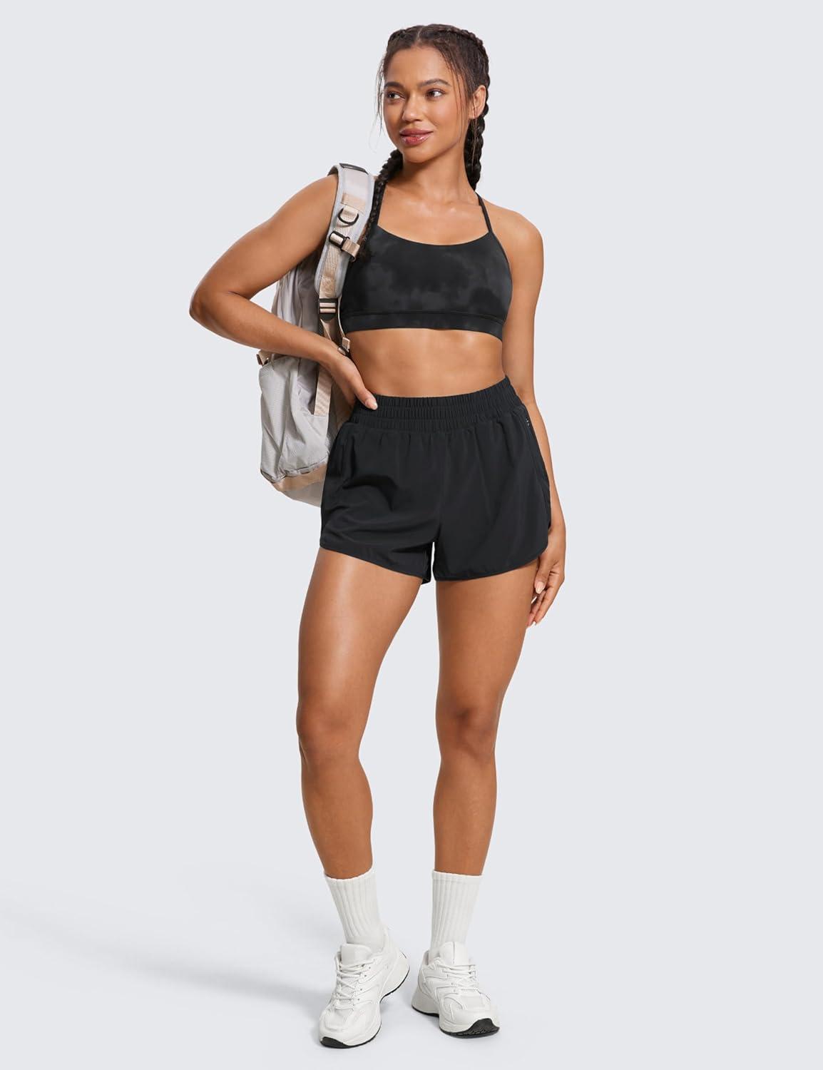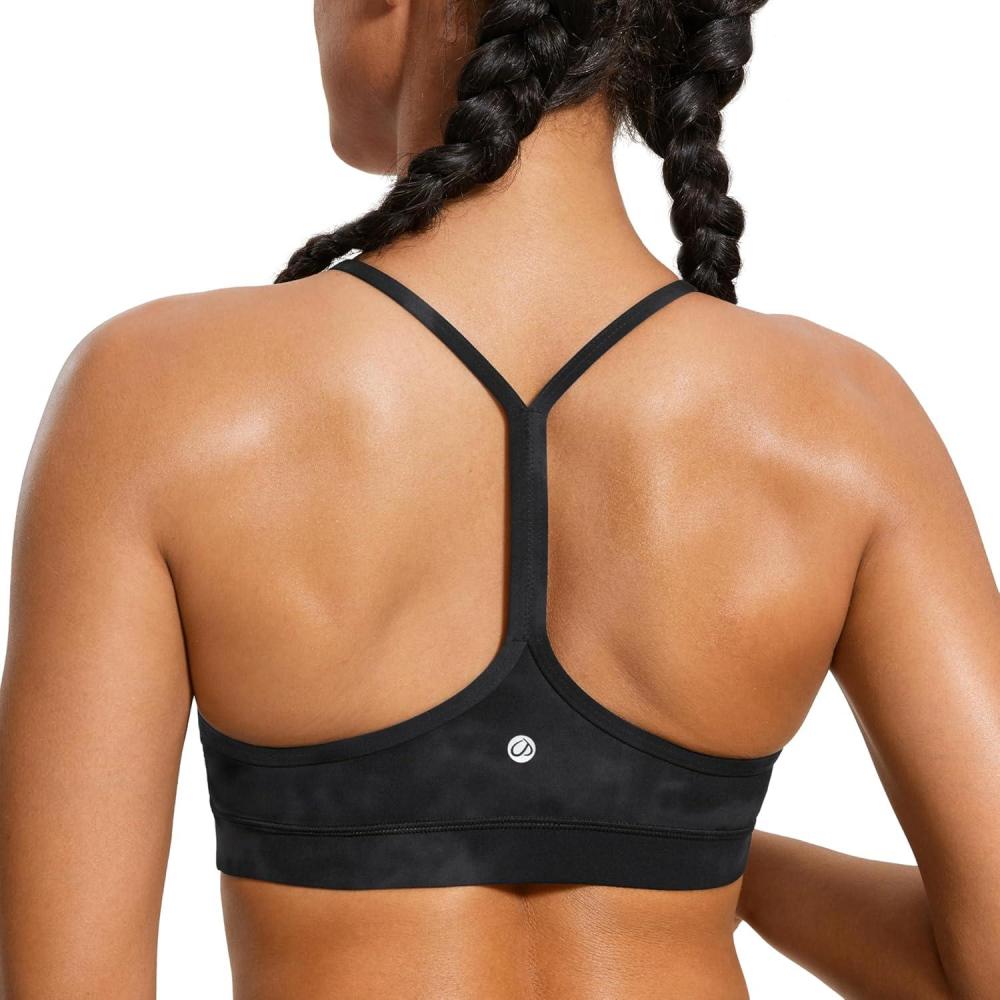 CRZ YOGA Butterluxe Y Back Sports Bras for Women – Padded Racerback Low Impact Spaghetti Thin Strap Workout Yoga Top(Black)