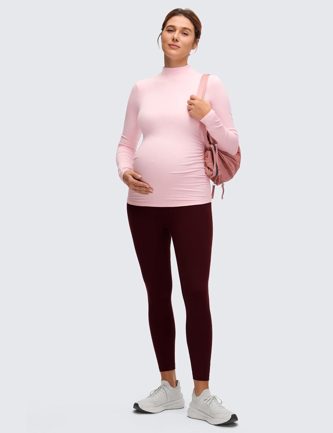 Cloud Jersey fabric makes you feel soft to touch, features of moisture-wicking and four-way stretch benefit comfort wearing. Mock neck maternity long sleeves shirts keeps warm and flattering, perfect for layer, lounge, casual or just at home.