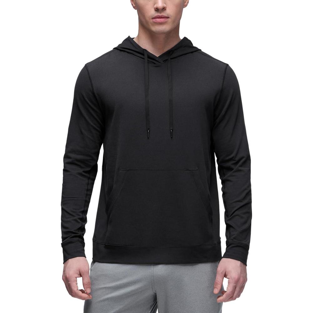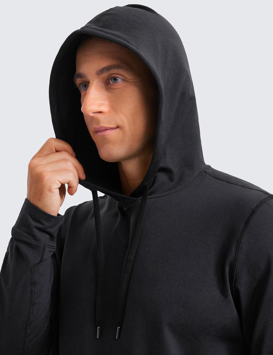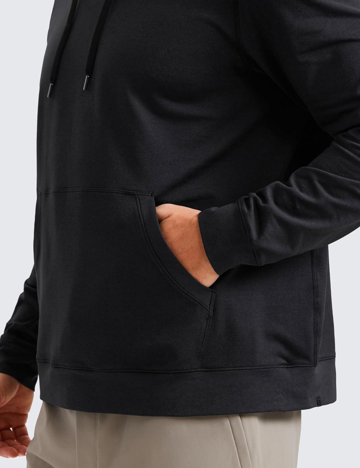 CRZ YOGA Cloud Jersey Pullover Hoodies for Men – Casual Workout Long Sleeve Basic Hooded Sweatshirts with Pocket(Black)