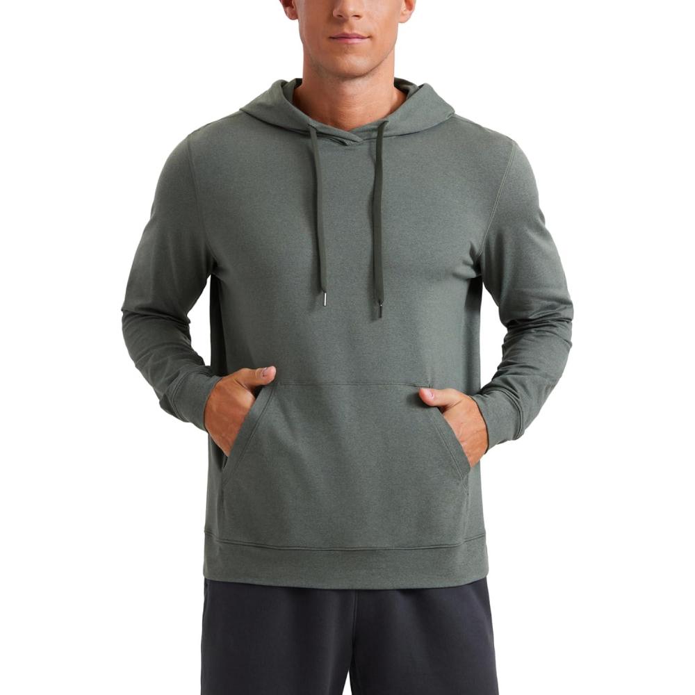 CRZ YOGA Cloud Jersey Pullover Hoodies for Men – Casual Workout Long Sleeve Basic Hooded Sweatshirts with Pocket(Grey Sage)