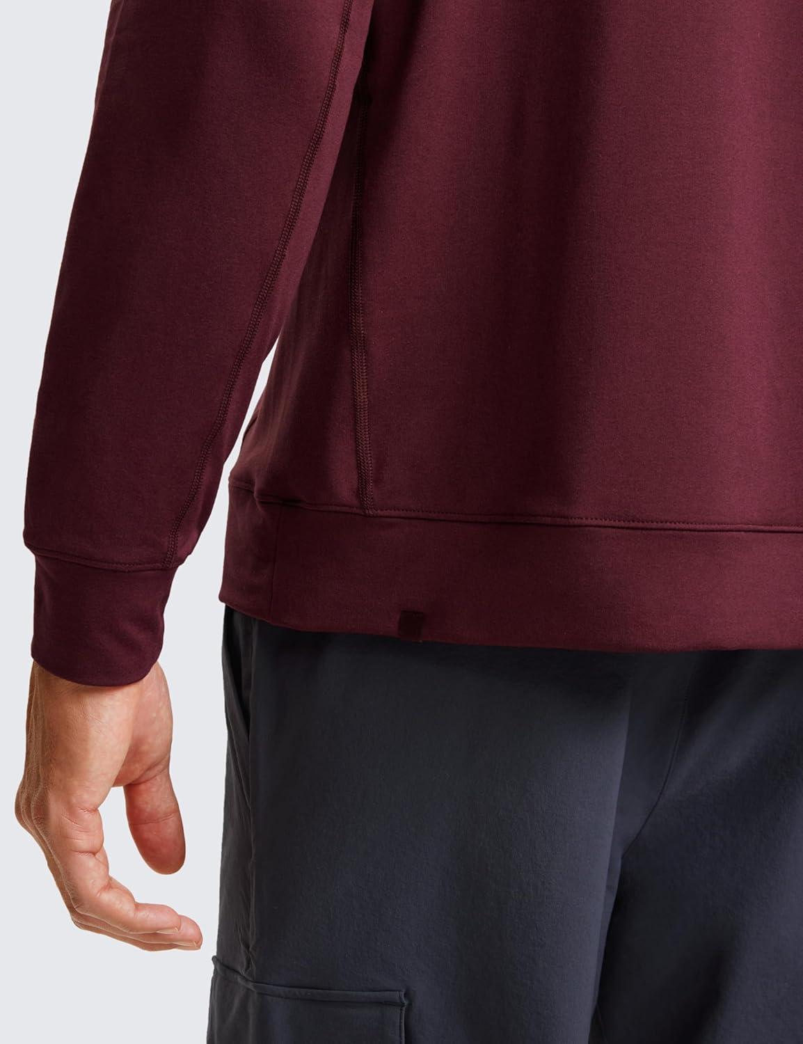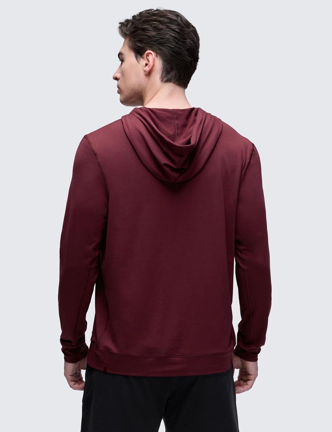 CRZ YOGA Cloud Jersey Pullover Hoodies for Men – Casual Workout Long Sleeve Basic Hooded Sweatshirts with Pocket(Red Merlot)