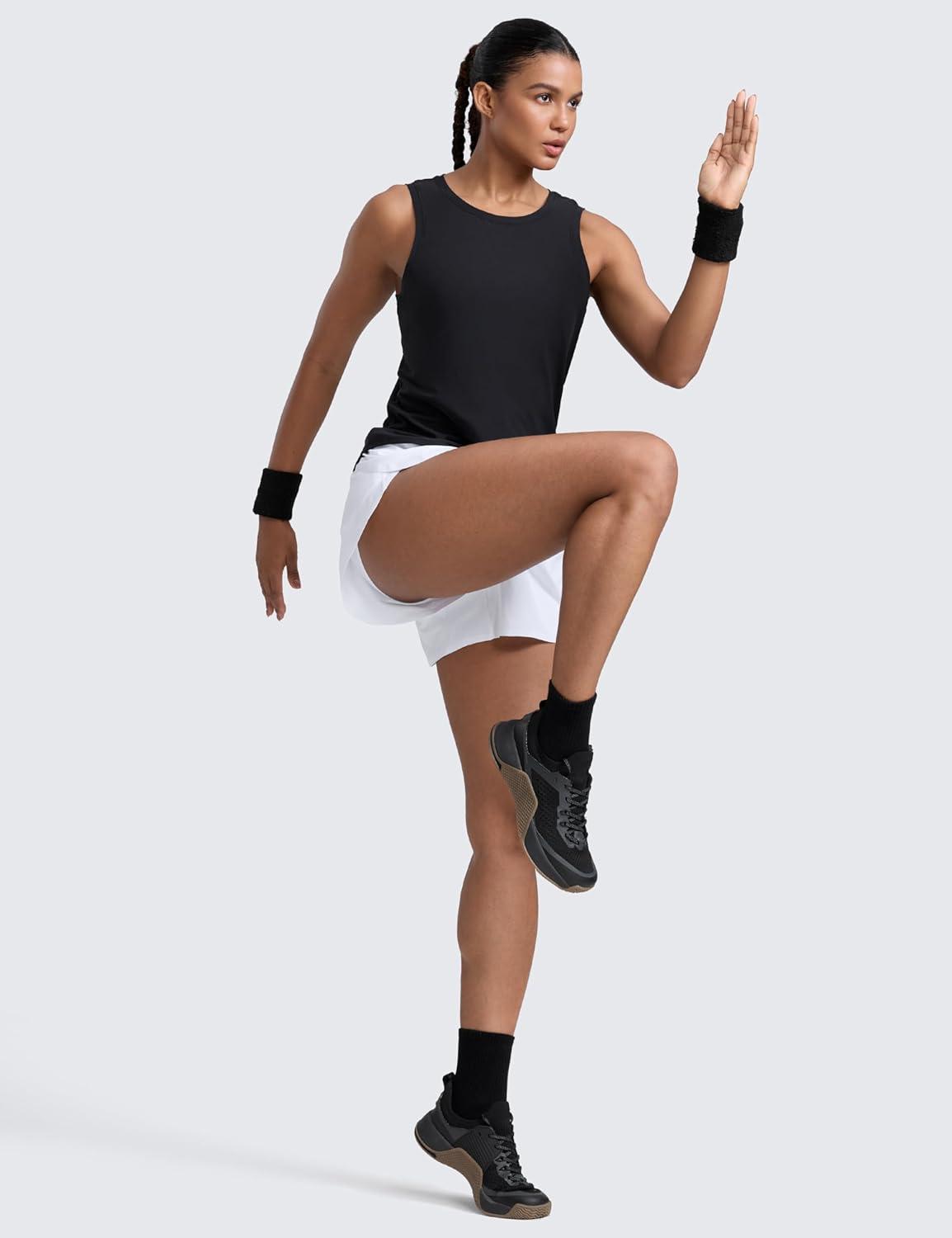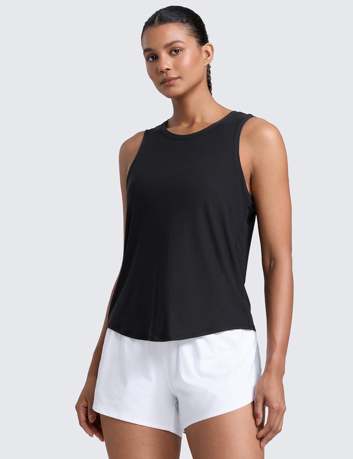 CRZ YOGA Cloudweight Open Back Workout Tops for Women Lightweight High Neck Athletic Gym Tank Soft Running Sleeveless Shirts(Black)