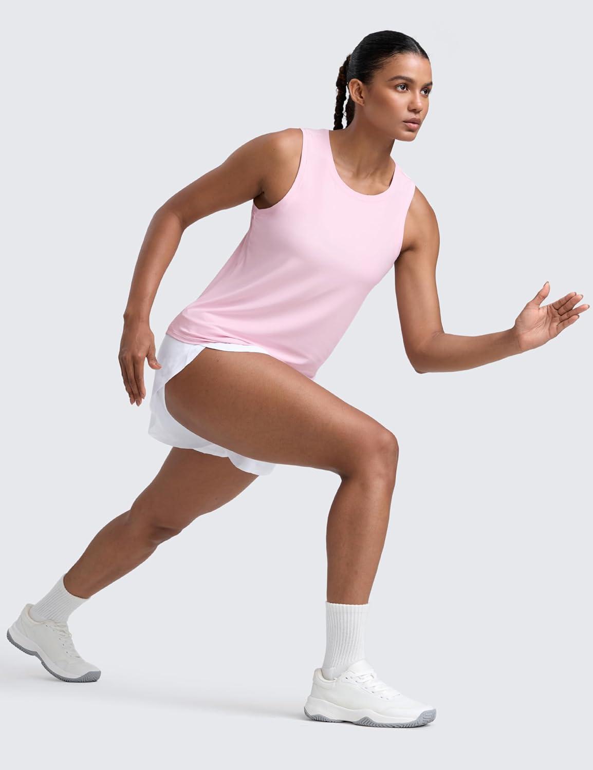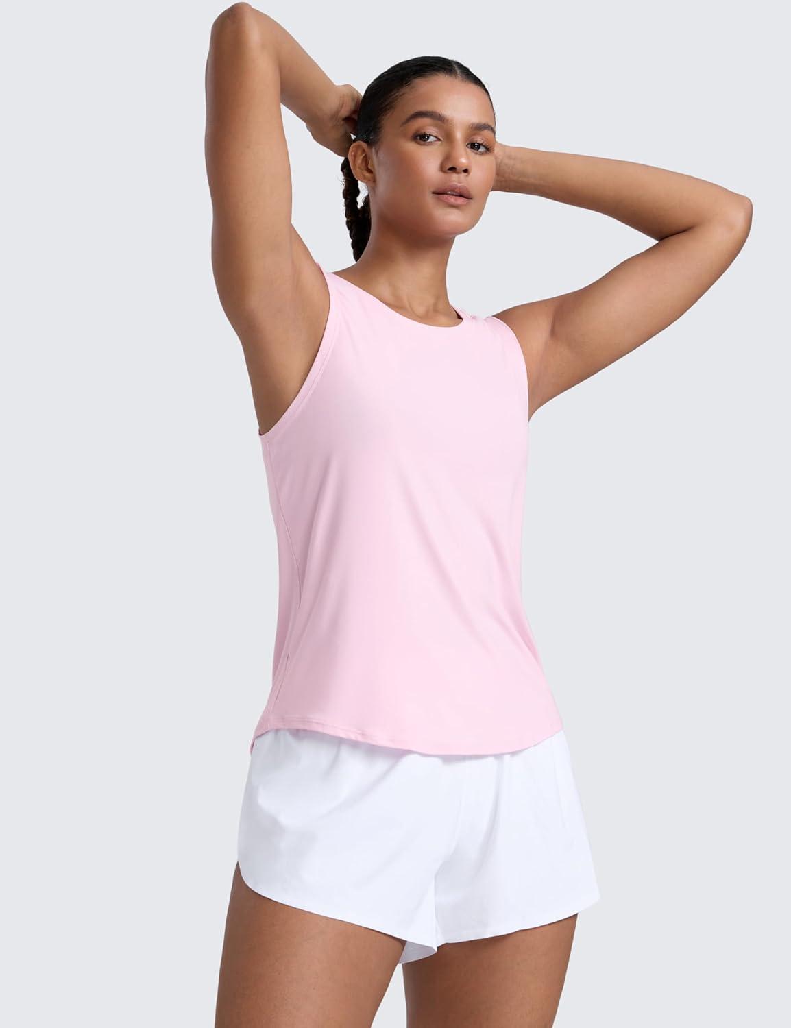 CRZ YOGA Cloudweight Open Back Workout Tops for Women Lightweight High Neck Athletic Gym Tank Soft Running Sleeveless Shirts(Pink Peony)