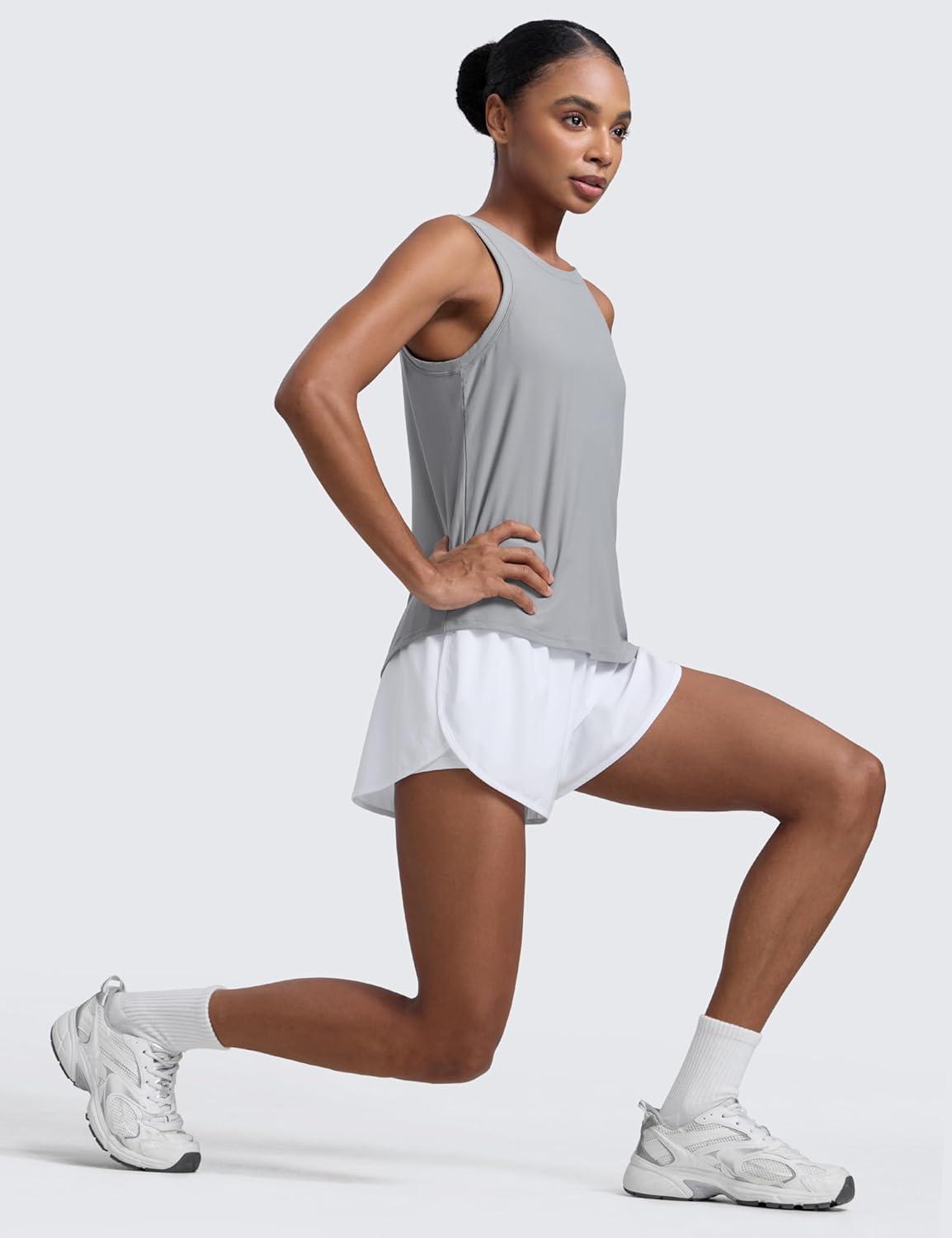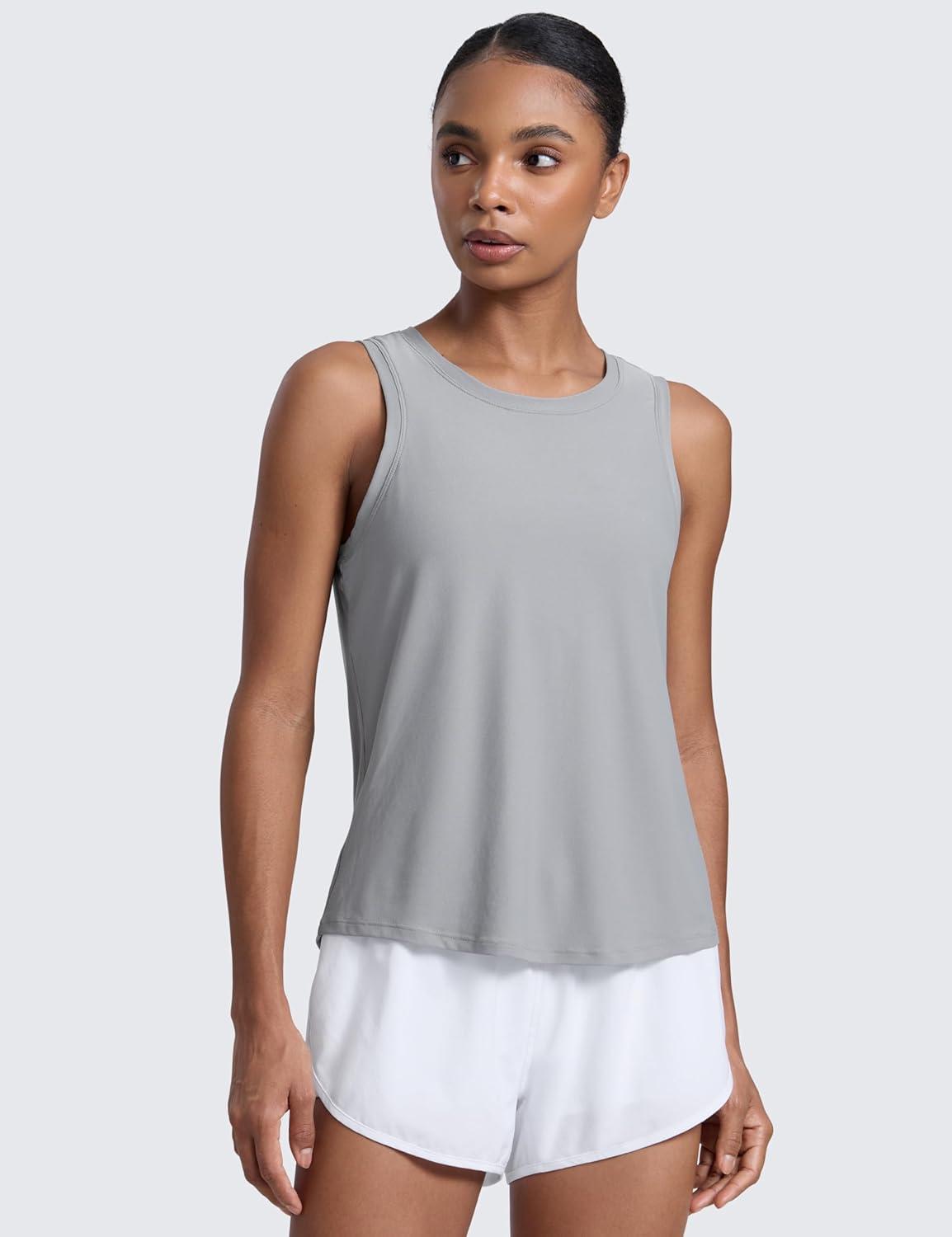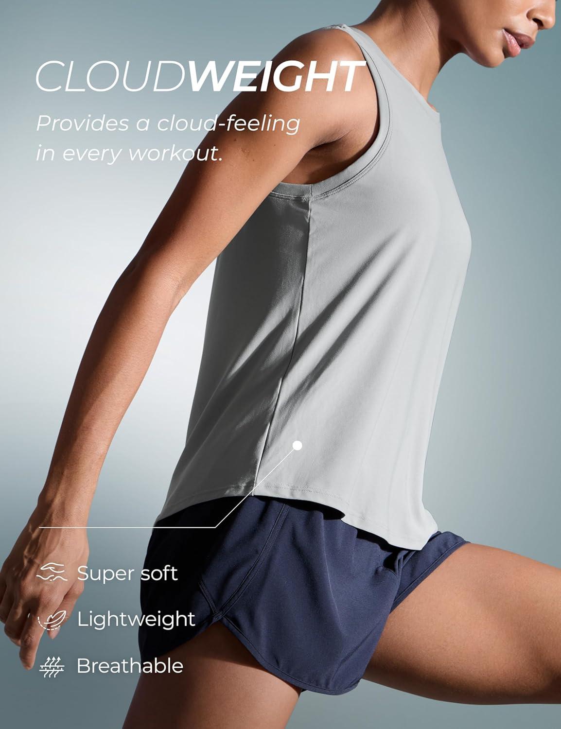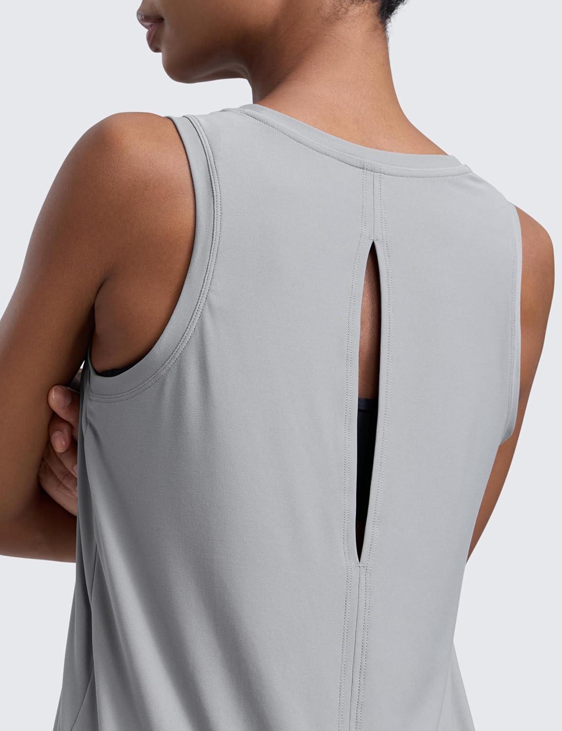 CRZ YOGA Cloudweight Open Back Workout Tops for Women Lightweight High Neck Athletic Gym Tank Soft Running Sleeveless Shirts(Silver Gray)