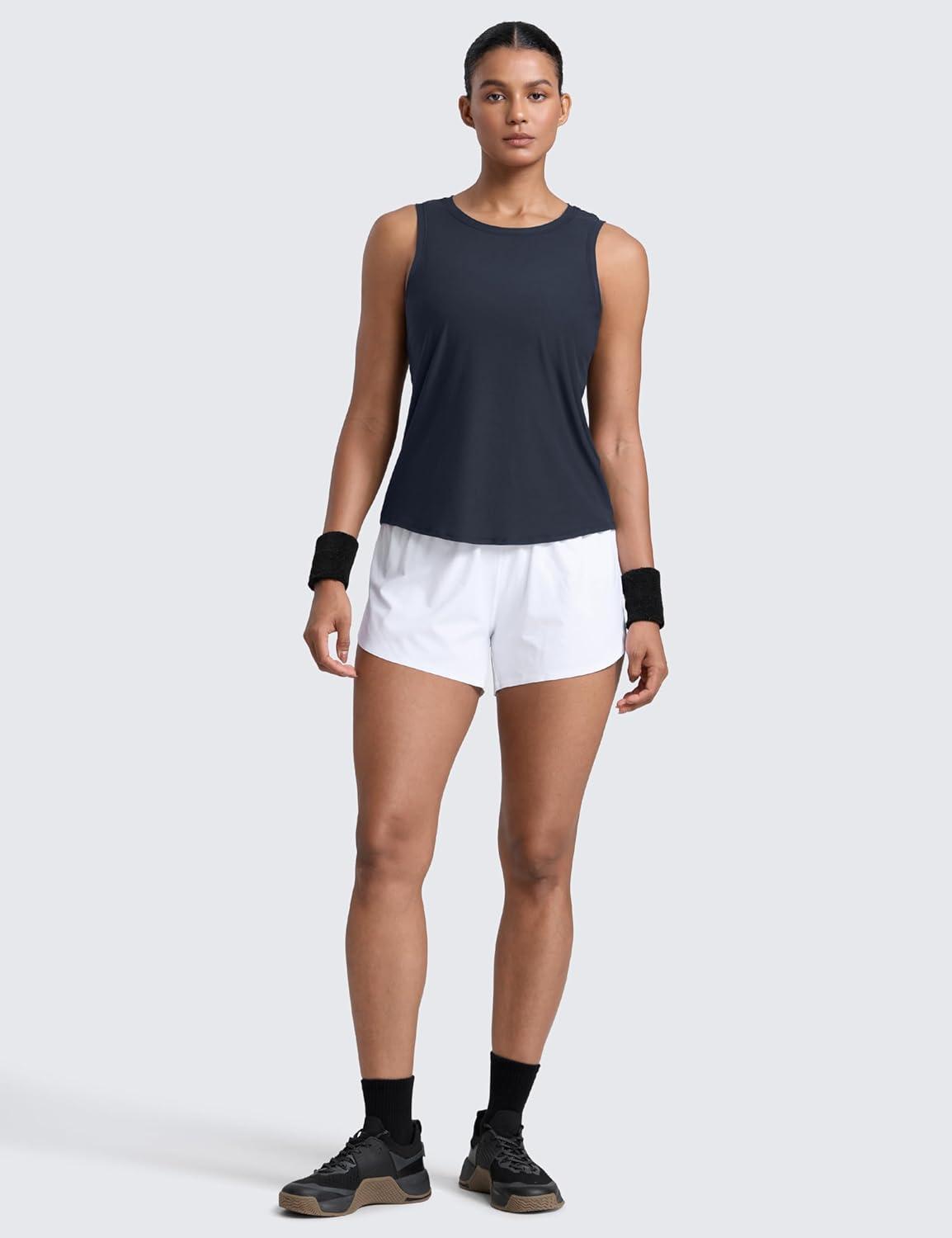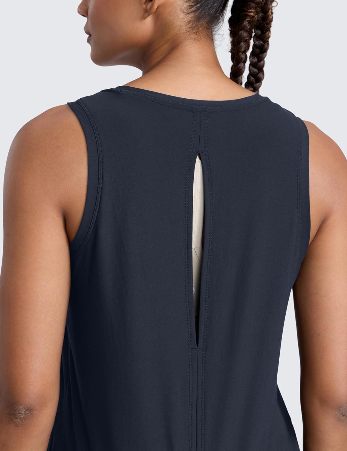 CRZ YOGA Cloudweight Open Back Workout Tops for Women Lightweight High Neck Athletic Gym Tank Soft Running Sleeveless Shirts(True Navy)