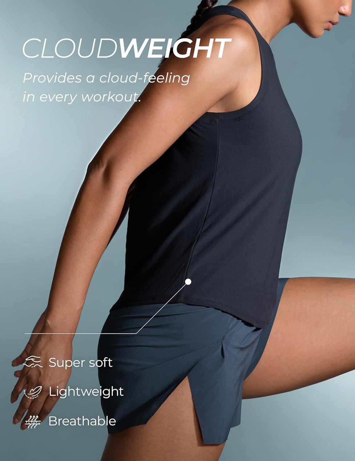 CRZ YOGA Cloudweight Open Back Workout Tops for Women Lightweight High Neck Athletic Gym Tank Soft Running Sleeveless Shirts(Silver Gray)
