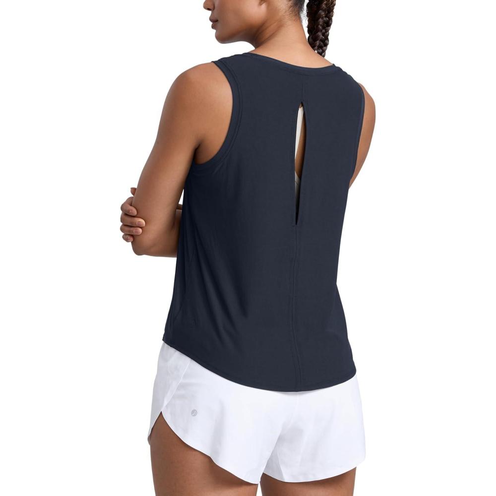 imageCRZ YOGA Cloudweight Open Back Workout Tops for Women Lightweight High Neck Athletic Gym Tank Soft Running Sleeveless ShirtsTrue Navy