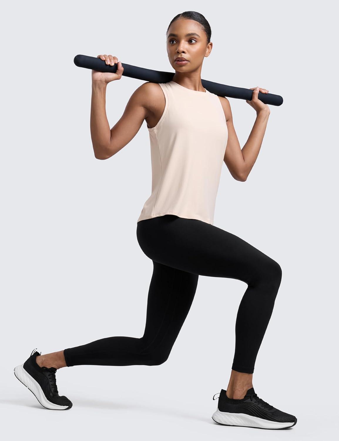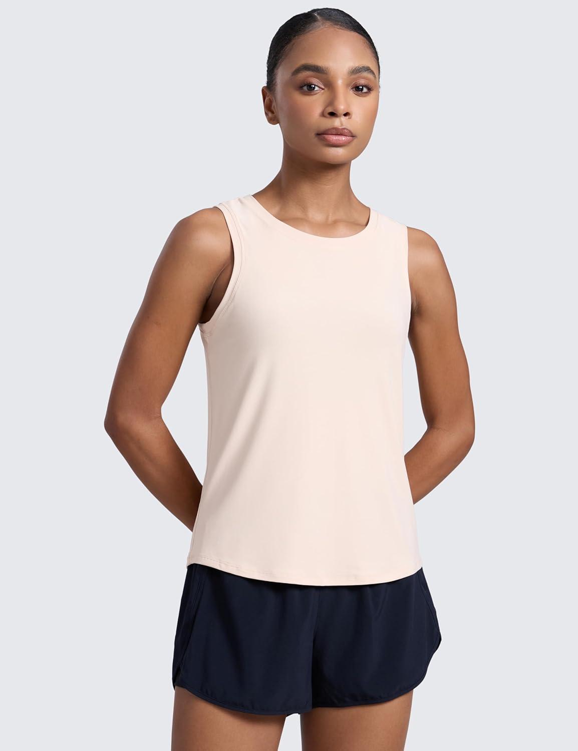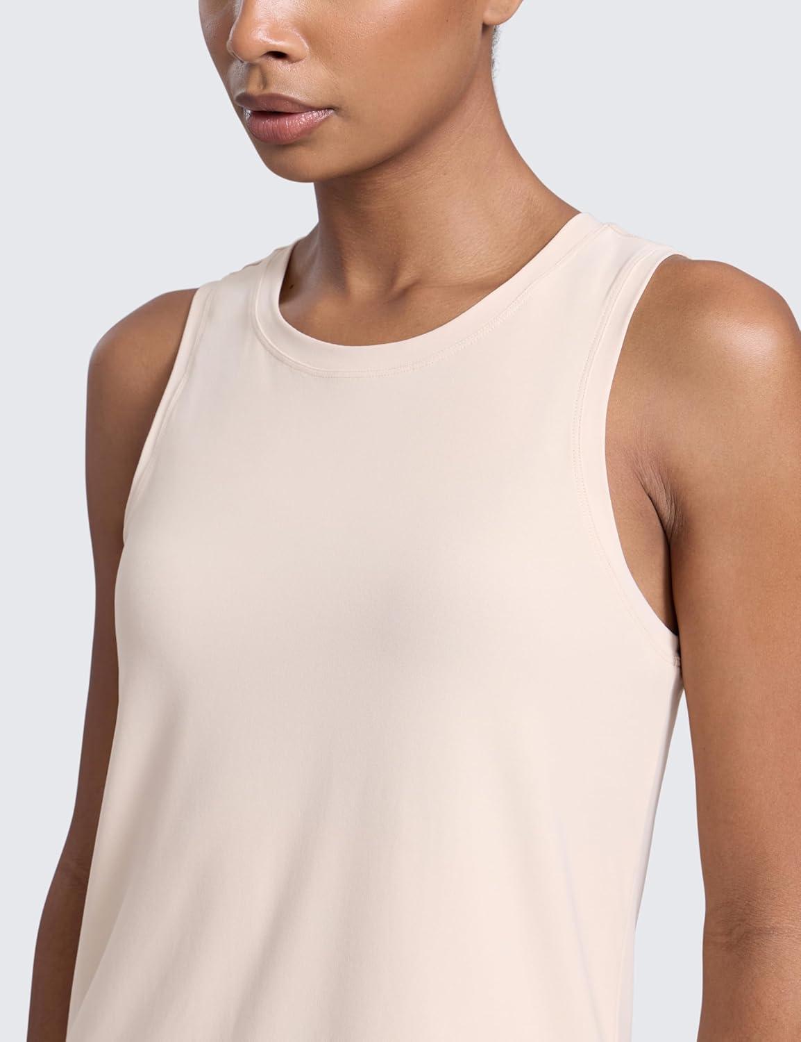 CRZ YOGA Cloudweight Open Back Workout Tops for Women Lightweight High Neck Athletic Gym Tank Soft Running Sleeveless Shirts(White Opal)