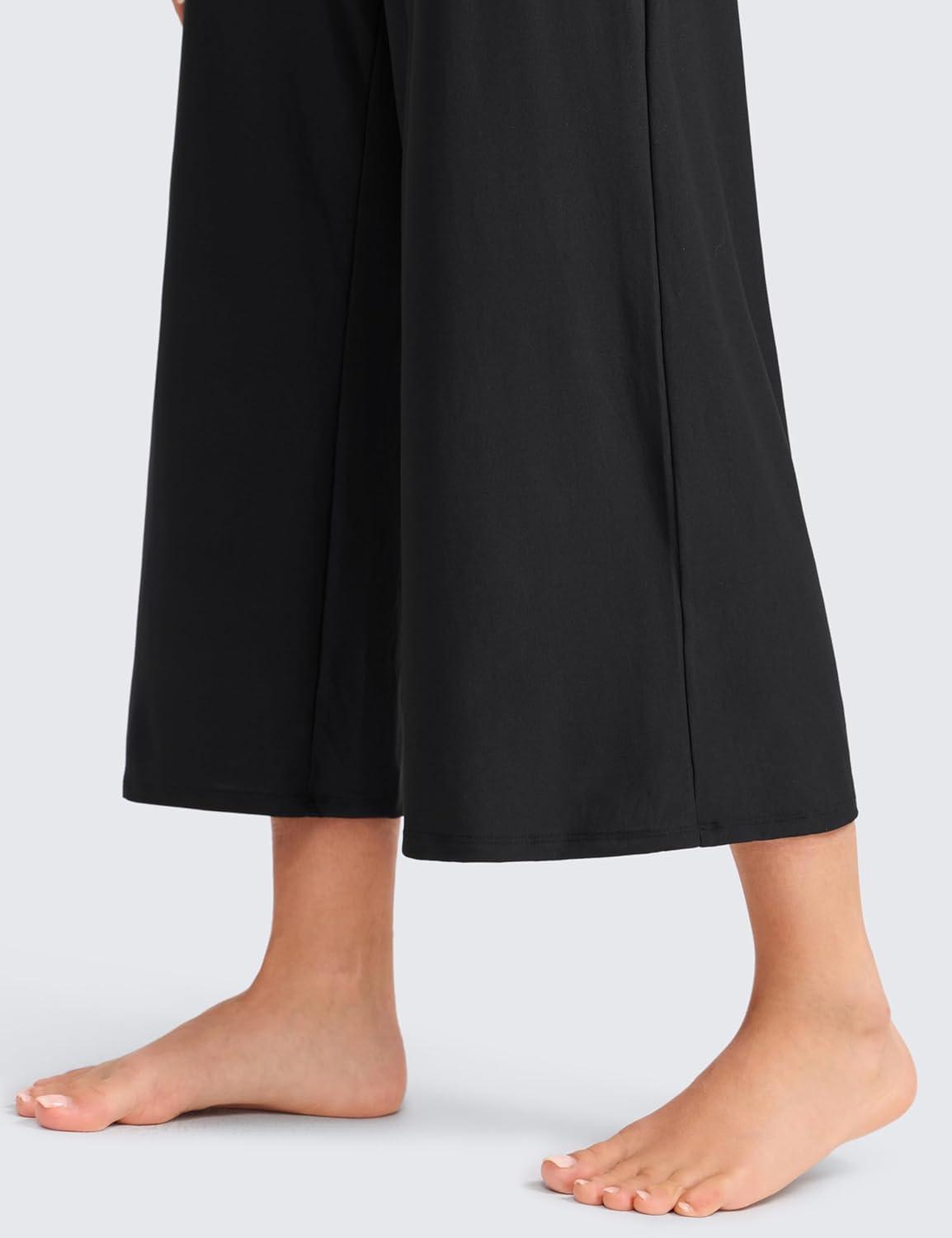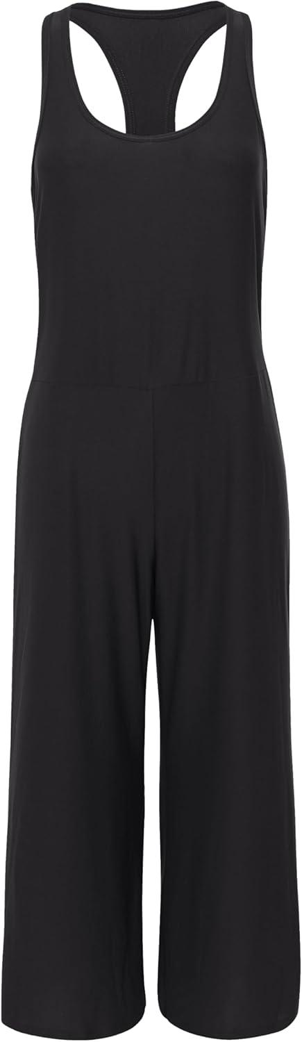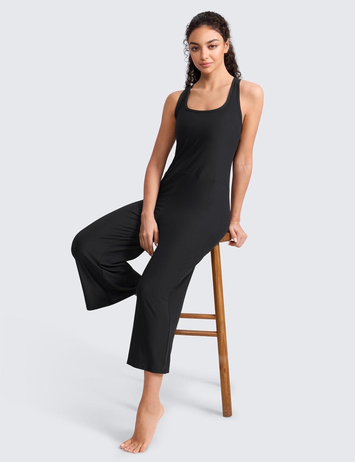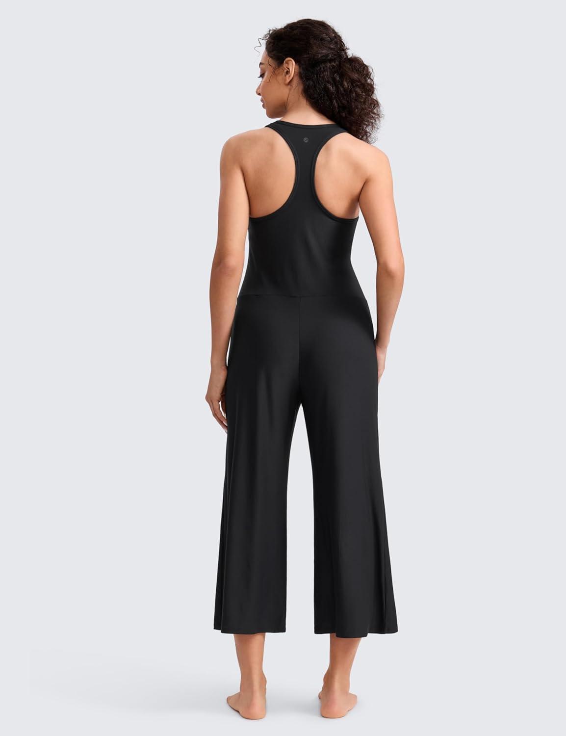 CRZ YOGA Cloudweight Racer Back Casual Jumpsuits for Women – Cropped Wide-leg Pants One Piece Yoga Bodysuits No Padded Bra(Black)