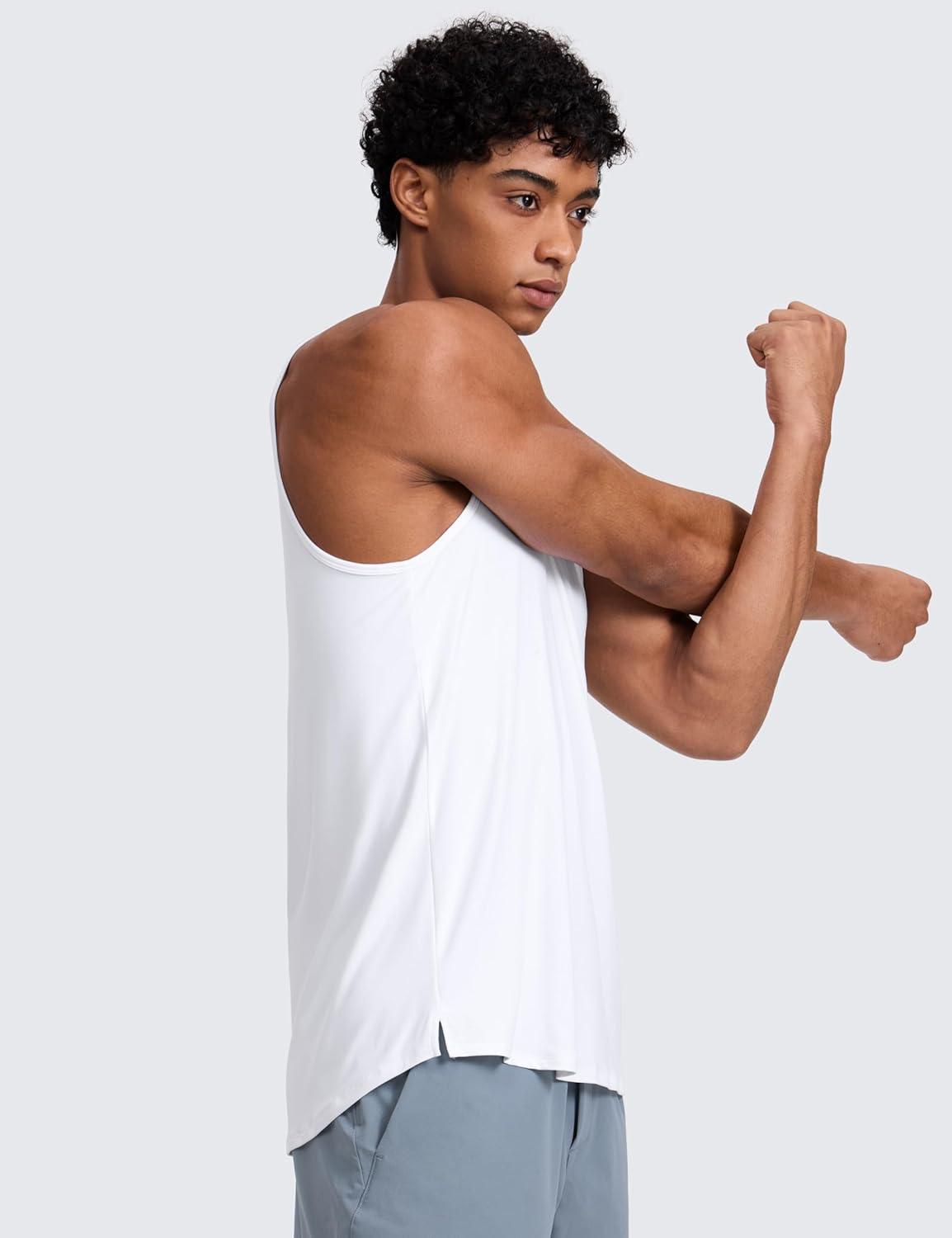 CRZ YOGA Cloudweight Workout Tank Tops for Men - Comfy Lightweight Quick Dry Sleeveless Muscle Athletic Shirts(White)