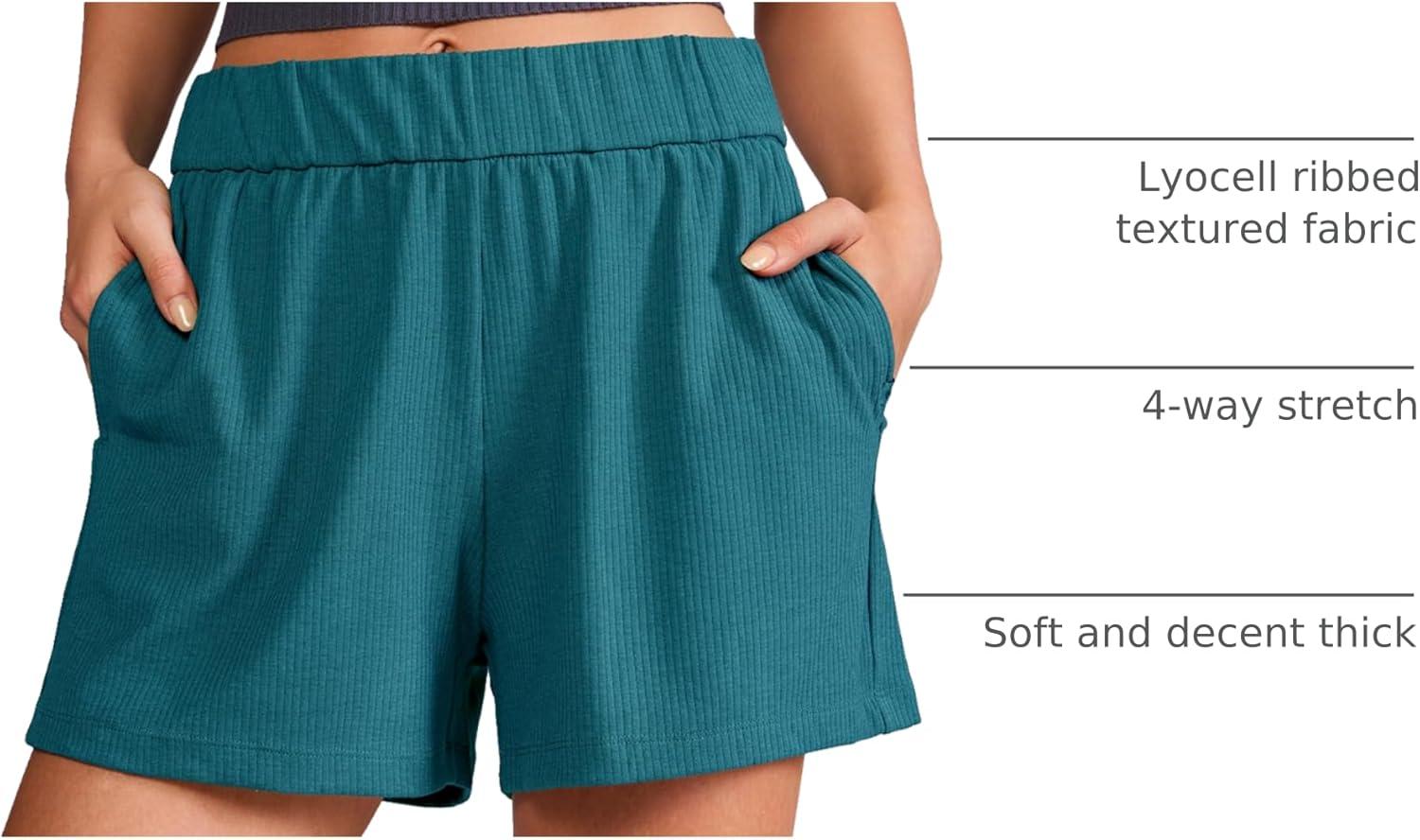 CRZ YOGA Comfy Ribbed Sweat Shorts for Women 3″ – High Waisted Lyocell for Casual Lounge Athletic Jersey with Pockets(Borealis Green)