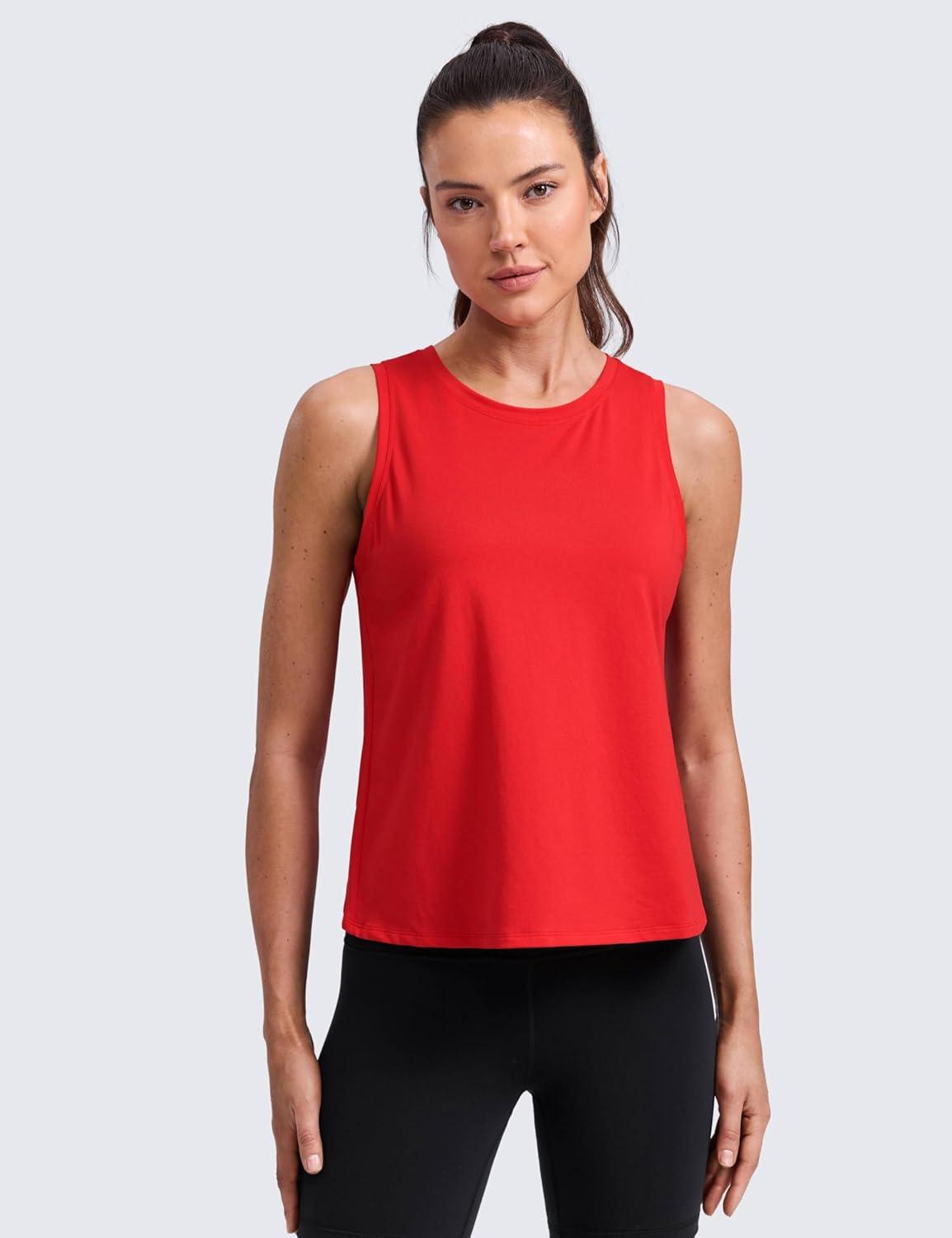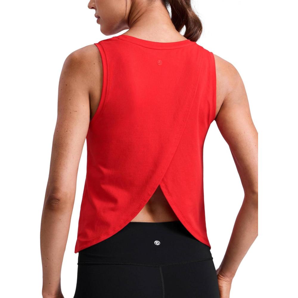 CRZ YOGA Cotton-Blend Split Open Back Tank Tops for Women – Workout Athletic Gym Casual Crewneck Sleeveless Shirts(Deep Red)