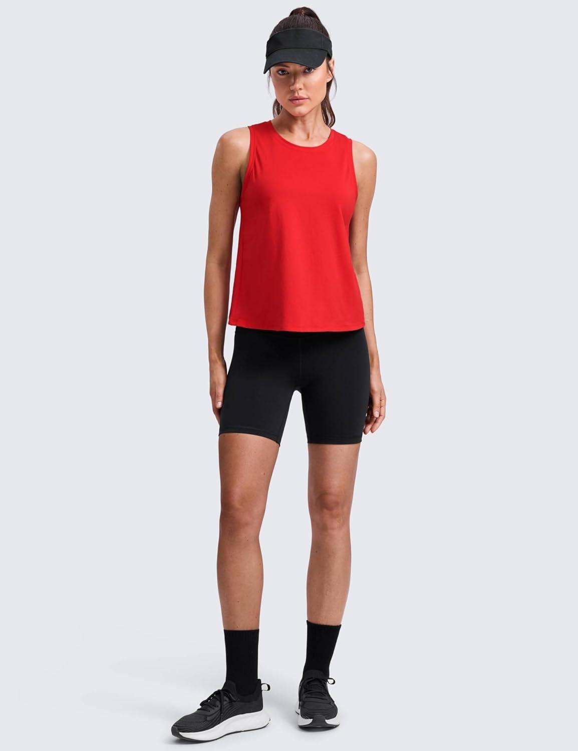 CRZ YOGA Cotton-Blend Split Open Back Tank Tops for Women - Workout Athletic Gym Casual Crewneck Sleeveless Shirts(Deep Red)