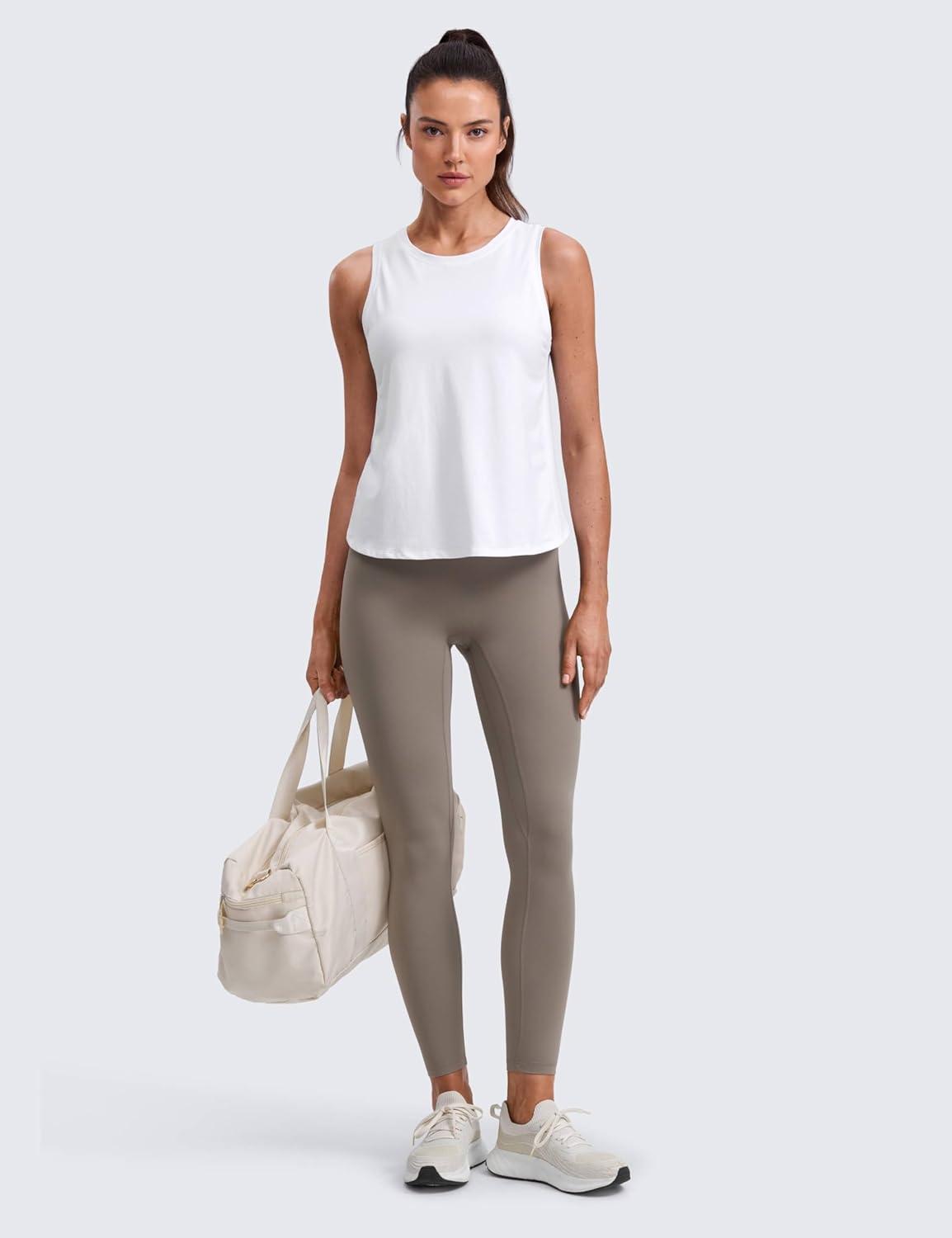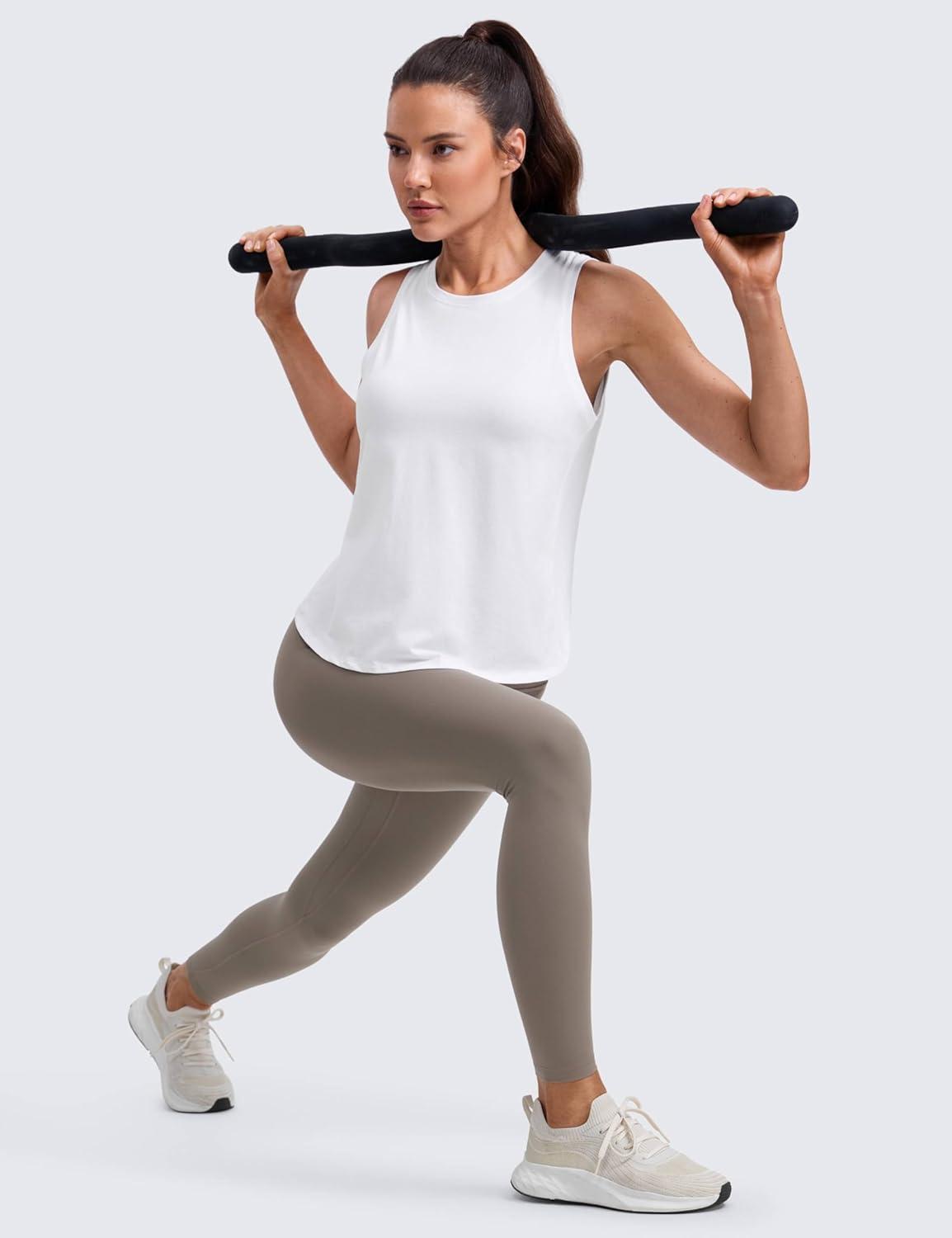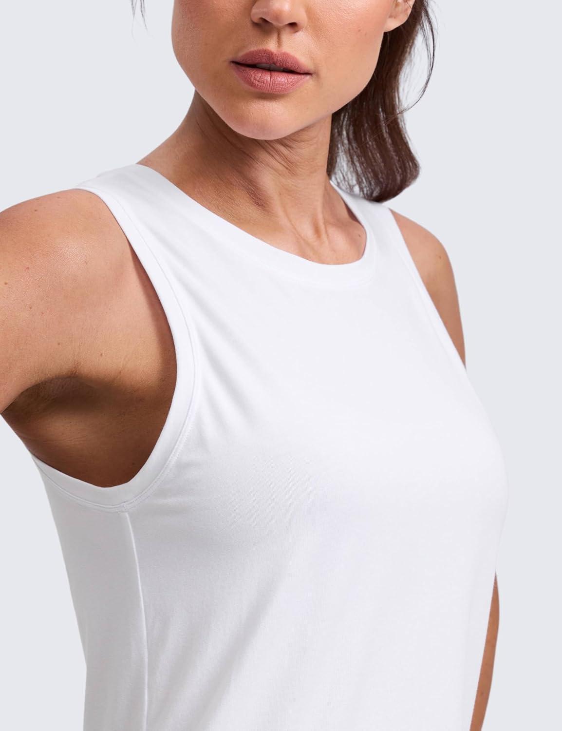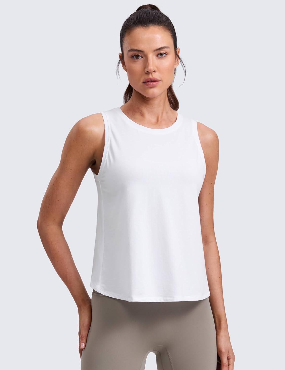 CRZ YOGA Cotton-Blend Split Open Back Tank Tops for Women – Workout Athletic Gym Casual Crewneck Sleeveless Shirts(White)