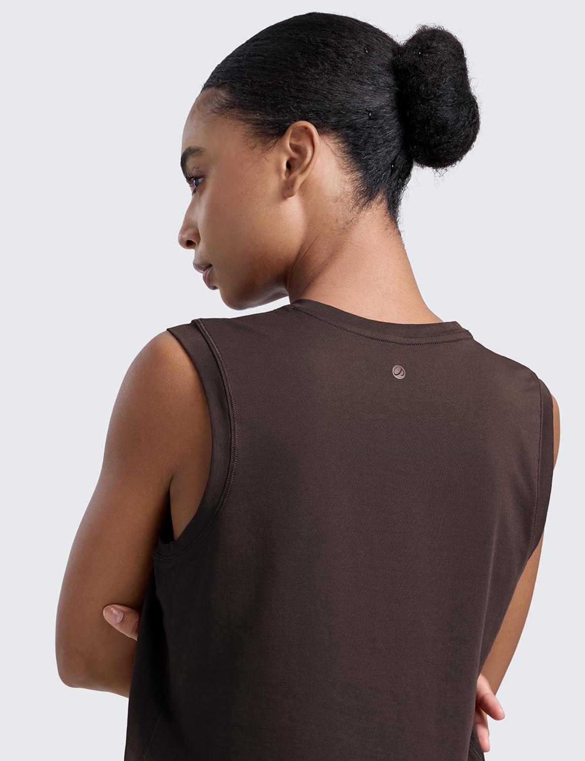 CRZ YOGA Cotton-Blend Workout Muscle Tank for Women Breathable Quick Dry High Neck Athletic Tops Casual Sleeveless Shirts(Hot Fudge Brown)